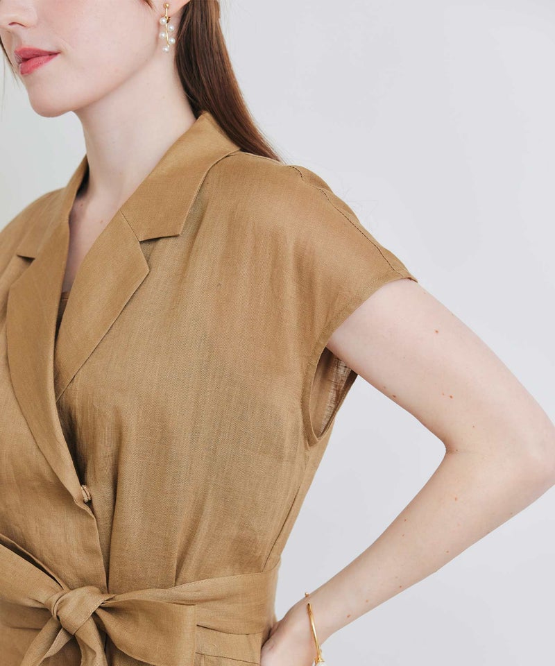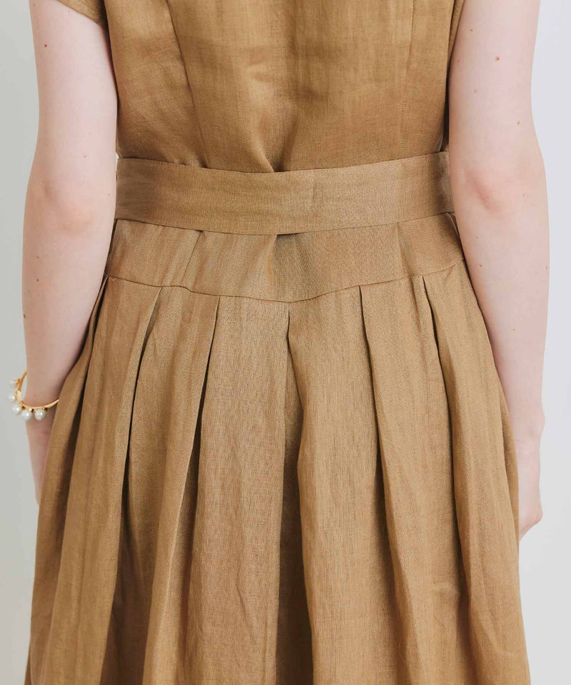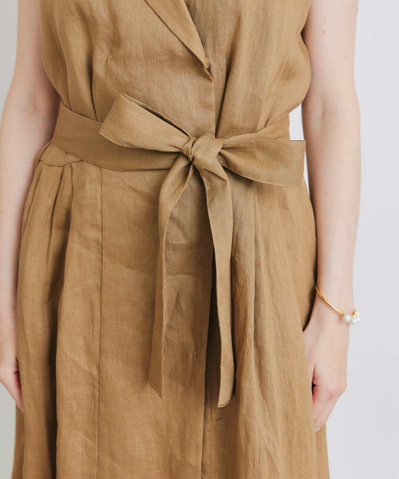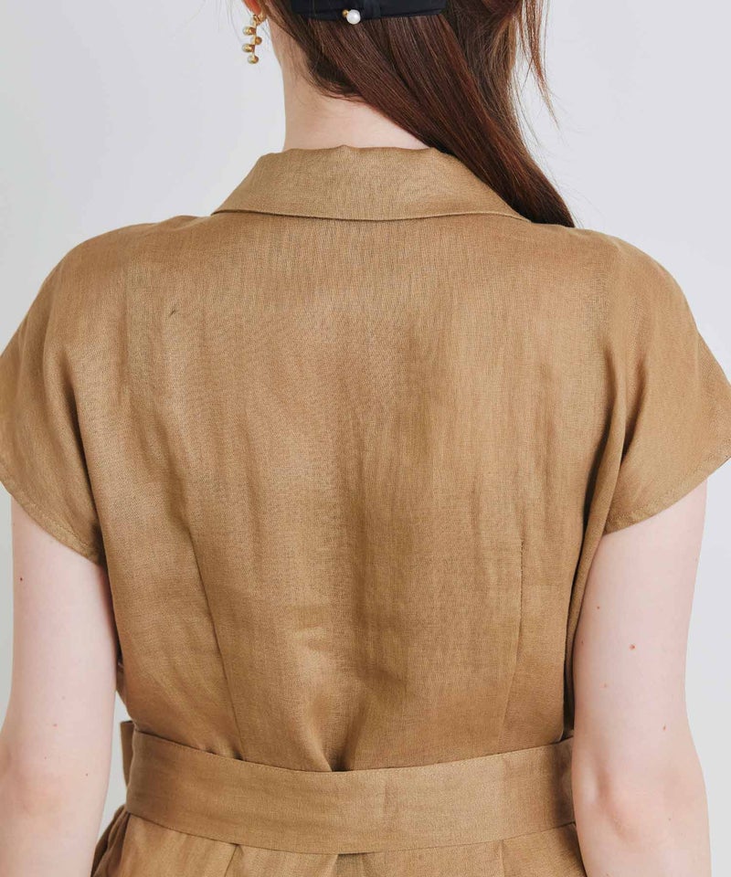 涼しさときちんと感を両立したリネンテーラーワンピース