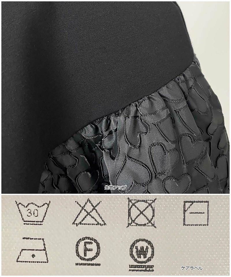 肩タックや裾切替えでハートジャガード生地をドッキングし、