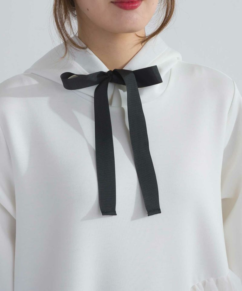 さらにフード部分に、グログランテープを配することで女性らしさをアップ。