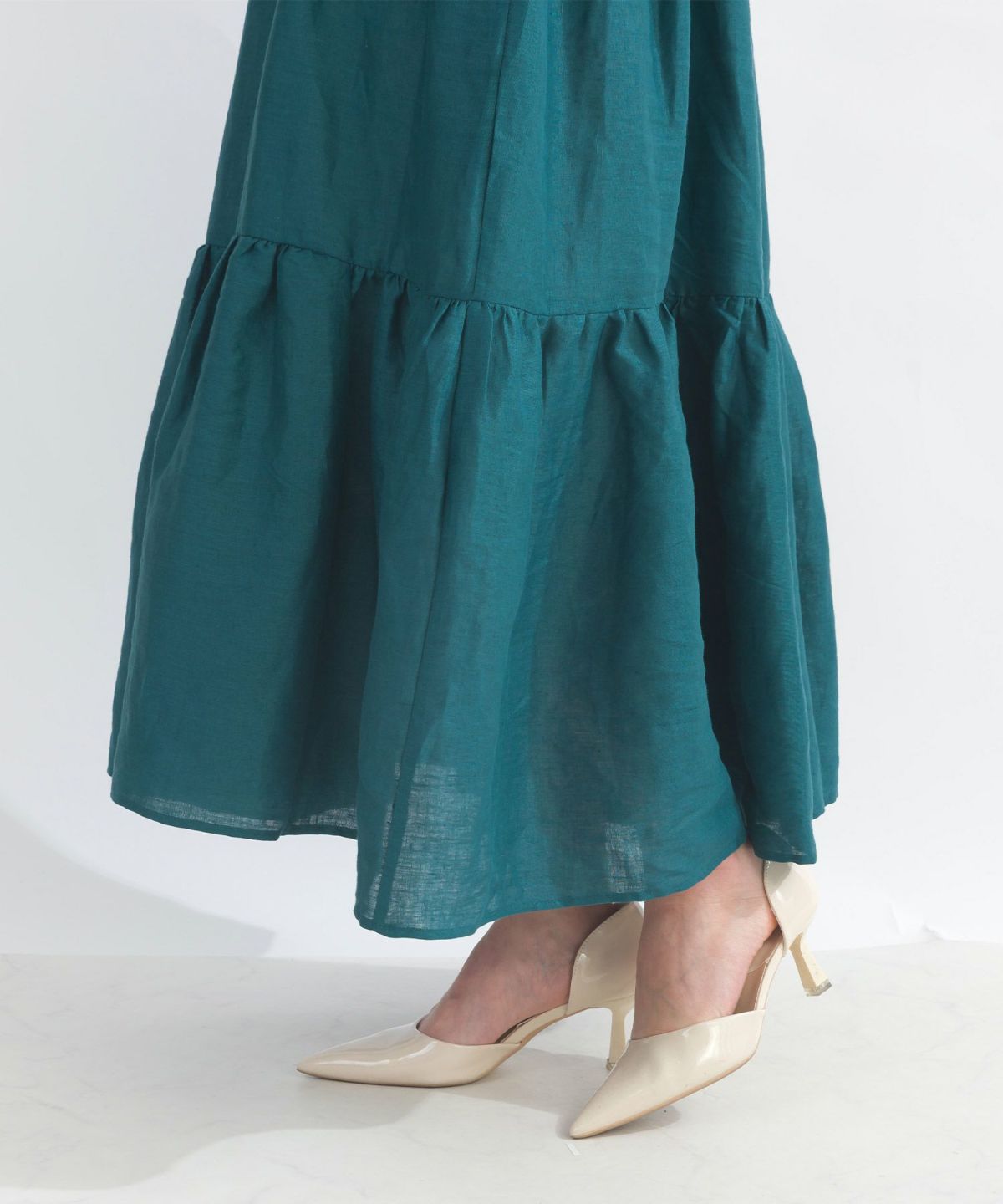 【セットアップ可能】ゴールドジャガードフレアワンピース