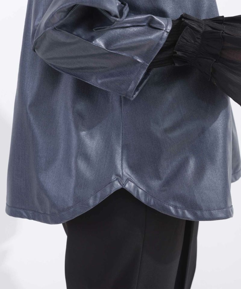 マニッシュアイテムのデニム生地をレディに仕上げたシャツジャケット。