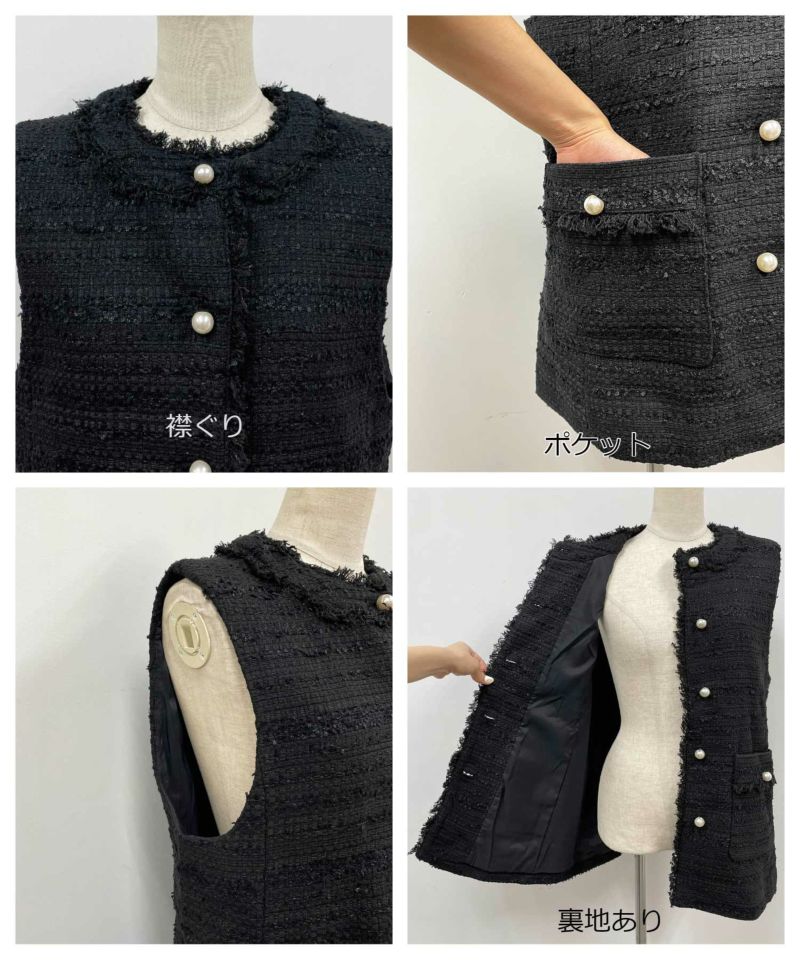 襟ぐり、前立て、ポケット部分にフリンジをプラスし、