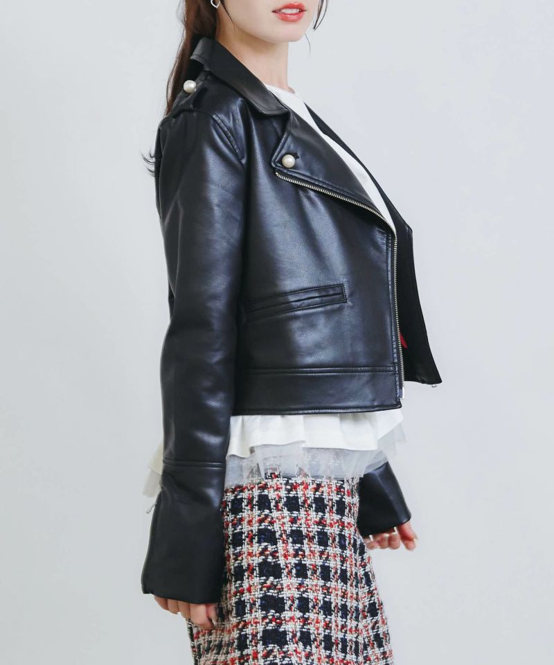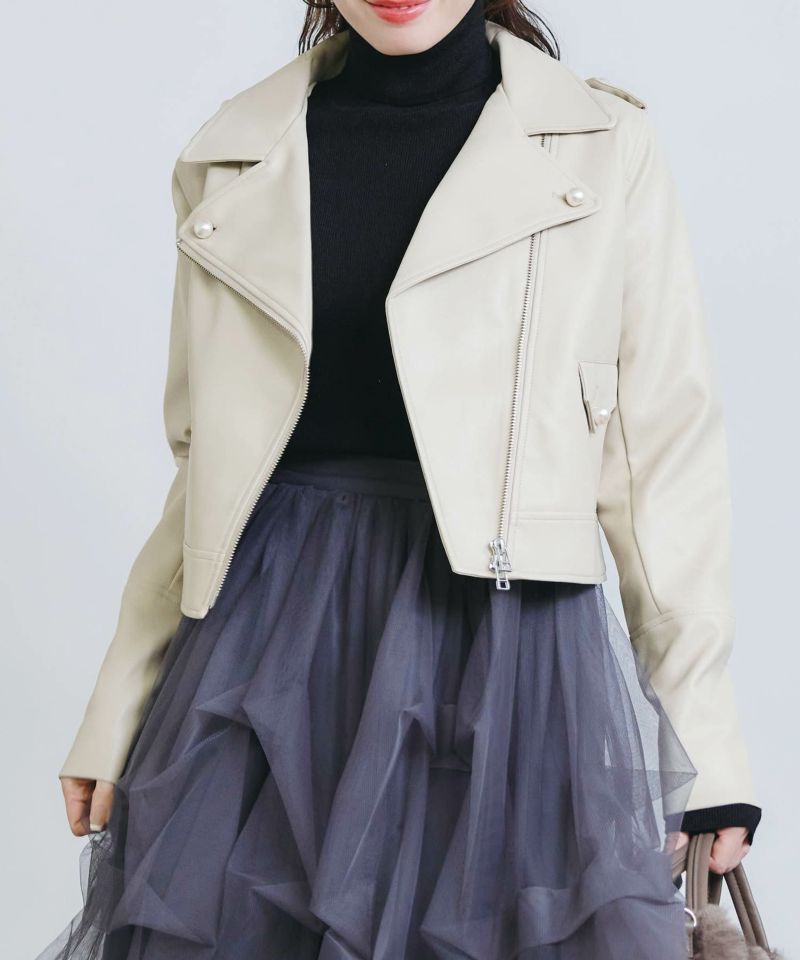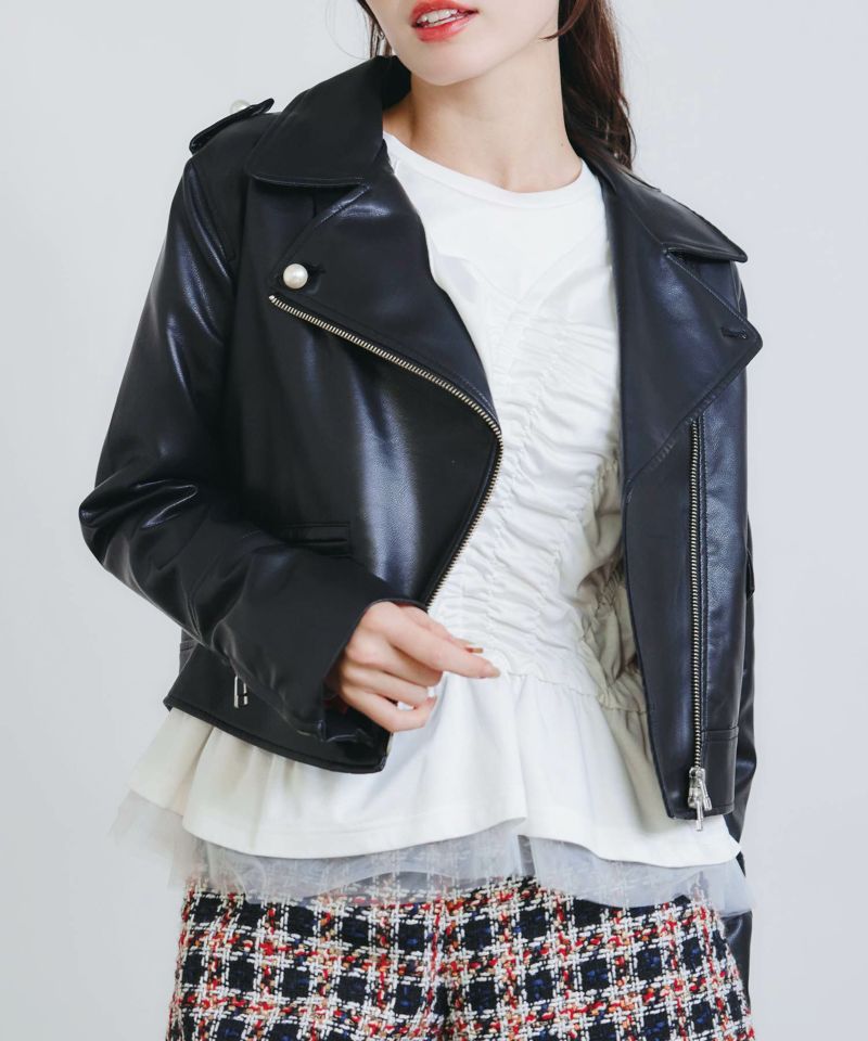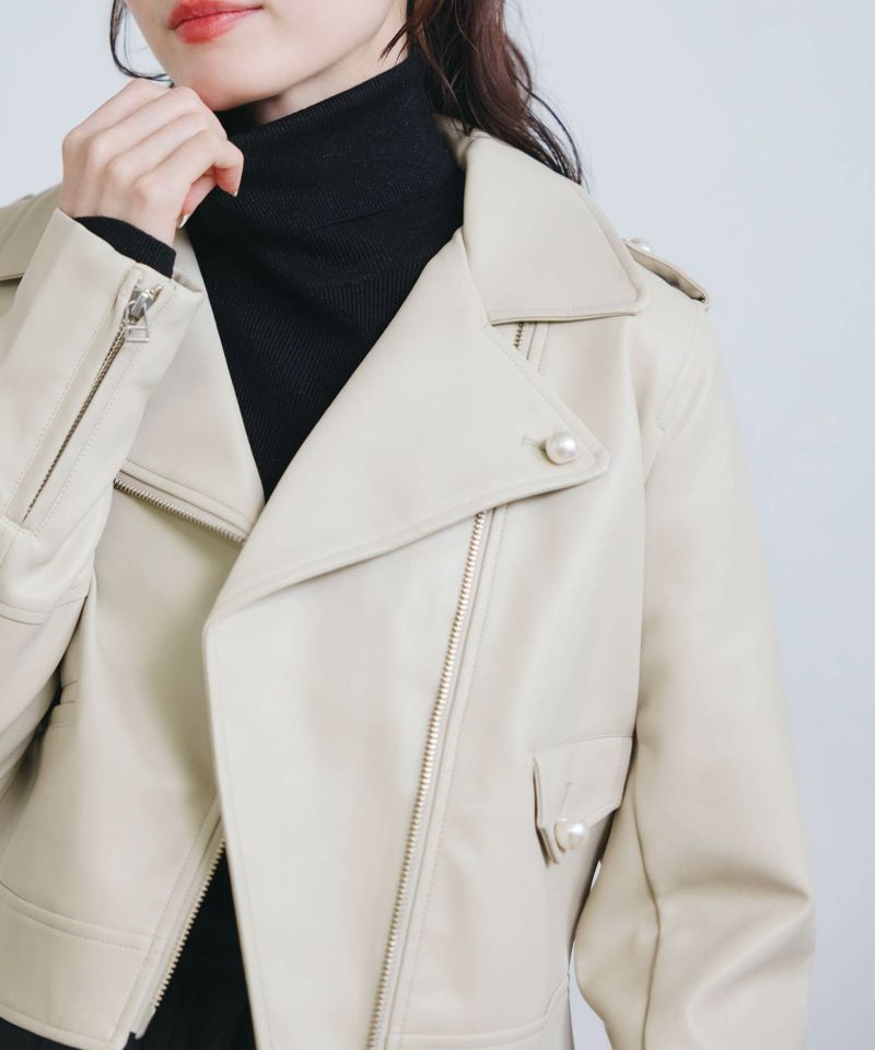 ラペルやポケット、エポレットなどのボタンはPICCINらしくパールボタン。