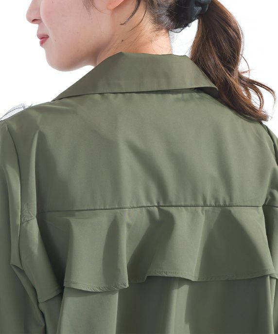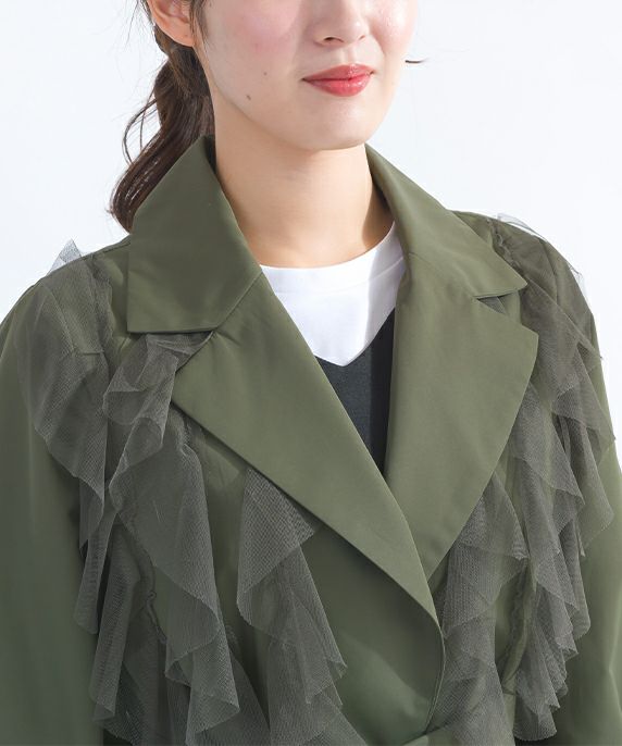 フロントに同色のチュールフリル、バックヨーク部分にティアードフリルを配し、