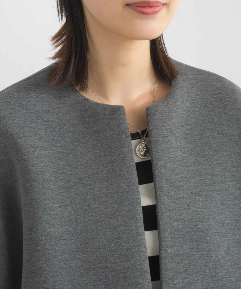 フロントにボタンがないデザインだから、さらりと羽織るだけで抜け感のある着こなしが完成します。