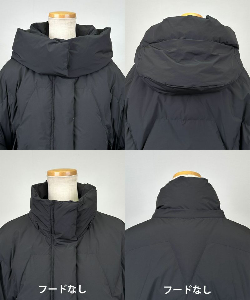 | 素材 | 表地: ポリエステル100% 別布 表面: ポリエステル70%, ポリウレタン30% 裏面: ポリエステル100% 詰め物 前身/袖/フード: ポリエステル100% 後身頃: ダウン80%, フェザー20% |