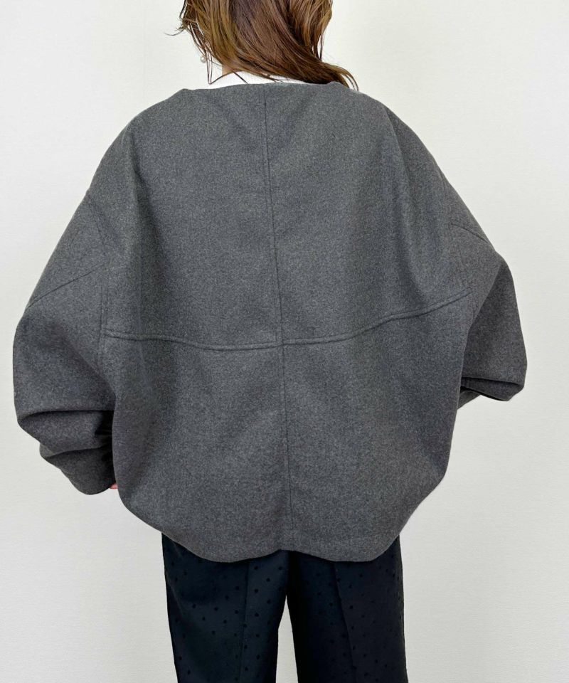 フードは取り外し可能で、閉めればスタンドネック、外せばノーカラーに。気分やコーデに合わせて着こなしを変えられます。