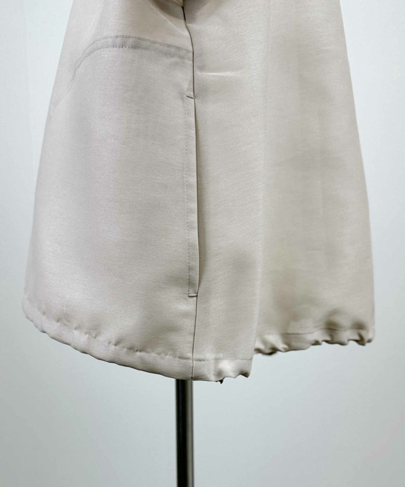裾のゴムにはスピンドルを配して、キュッと絞ってボリュームを演出することも可能。