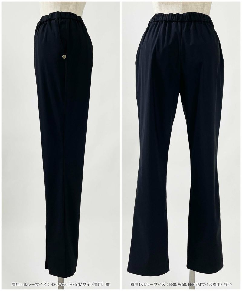 ウエストゴム仕様で楽に着用でき、センターラインが足を綺麗に見せてくれます◎