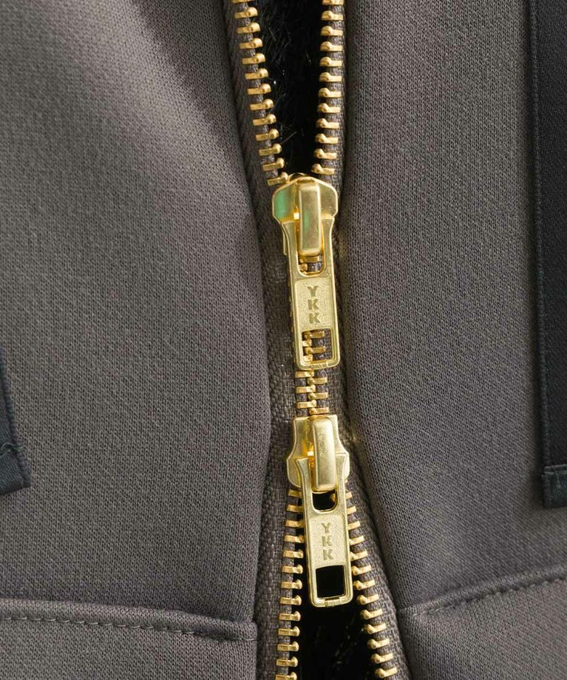 身返し部分にはグログランテープを付け、フロントファスナーはダブルファスナー。