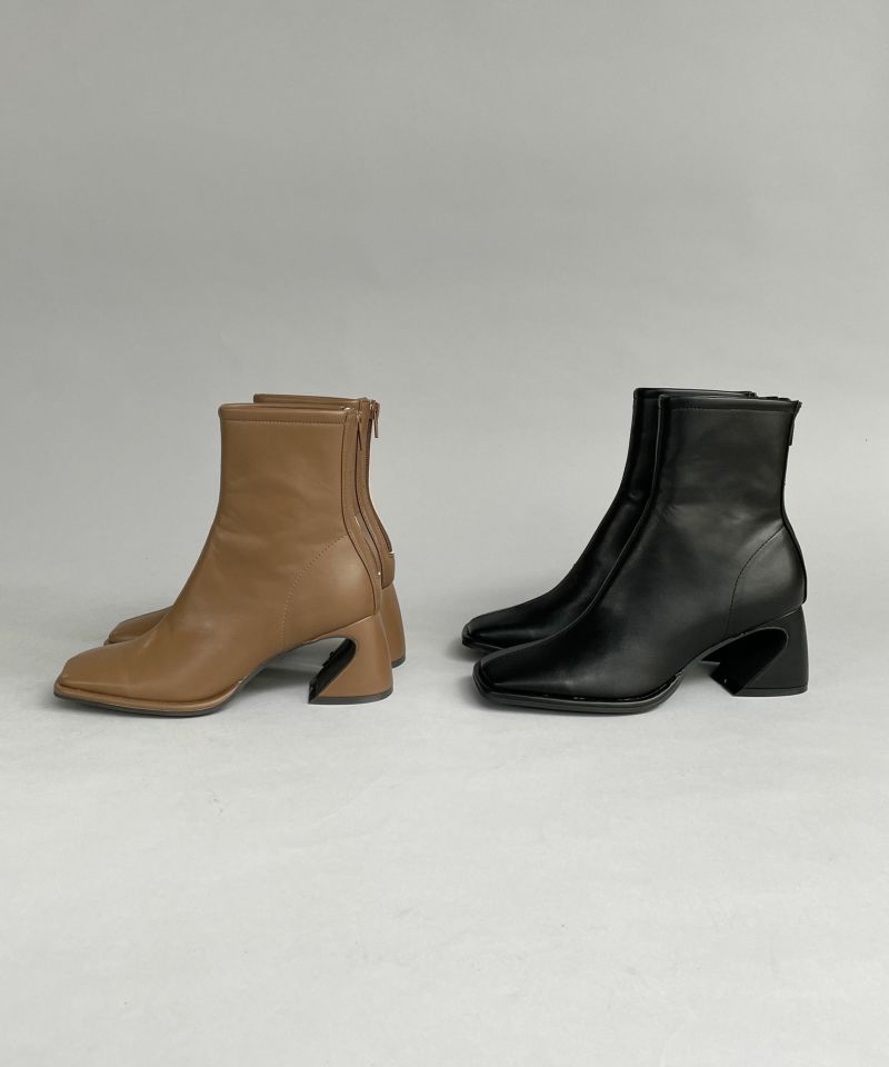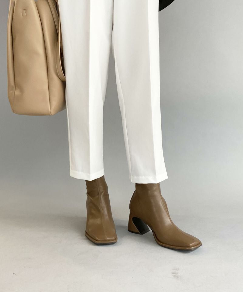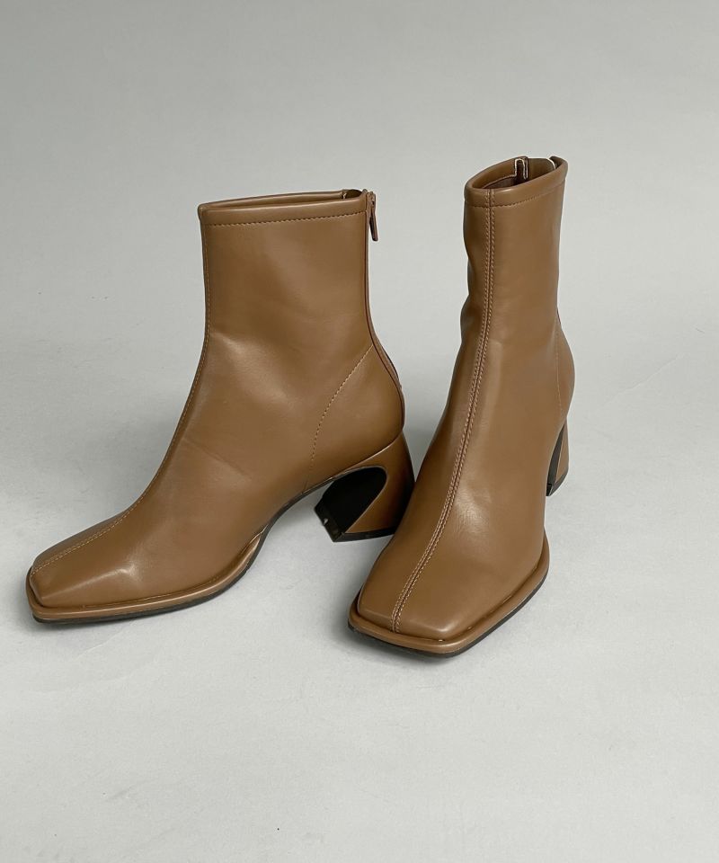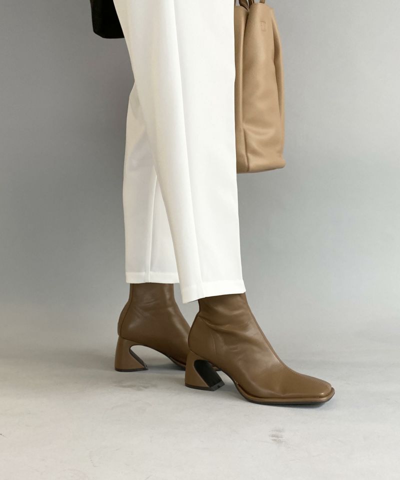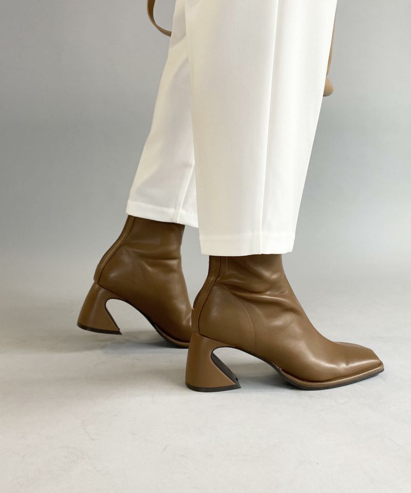 デザイン性のあるヒールがポイントのスクエアブーツ。