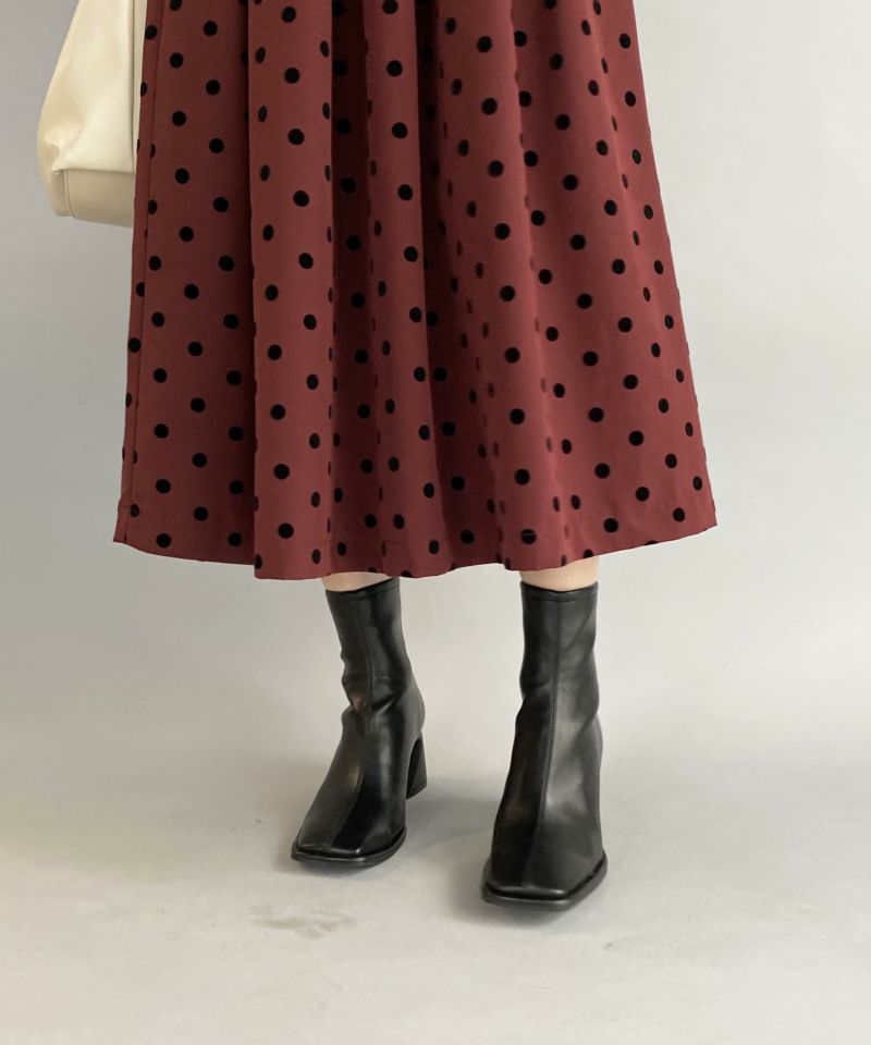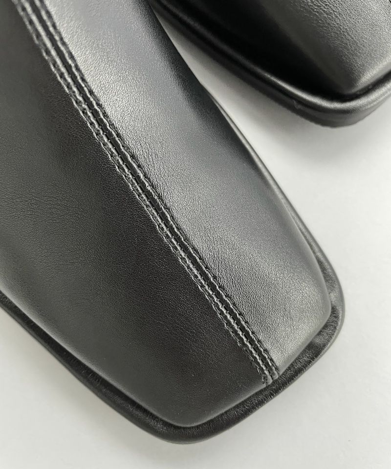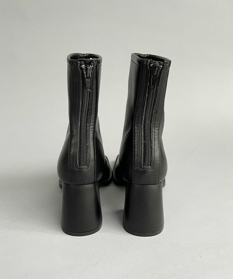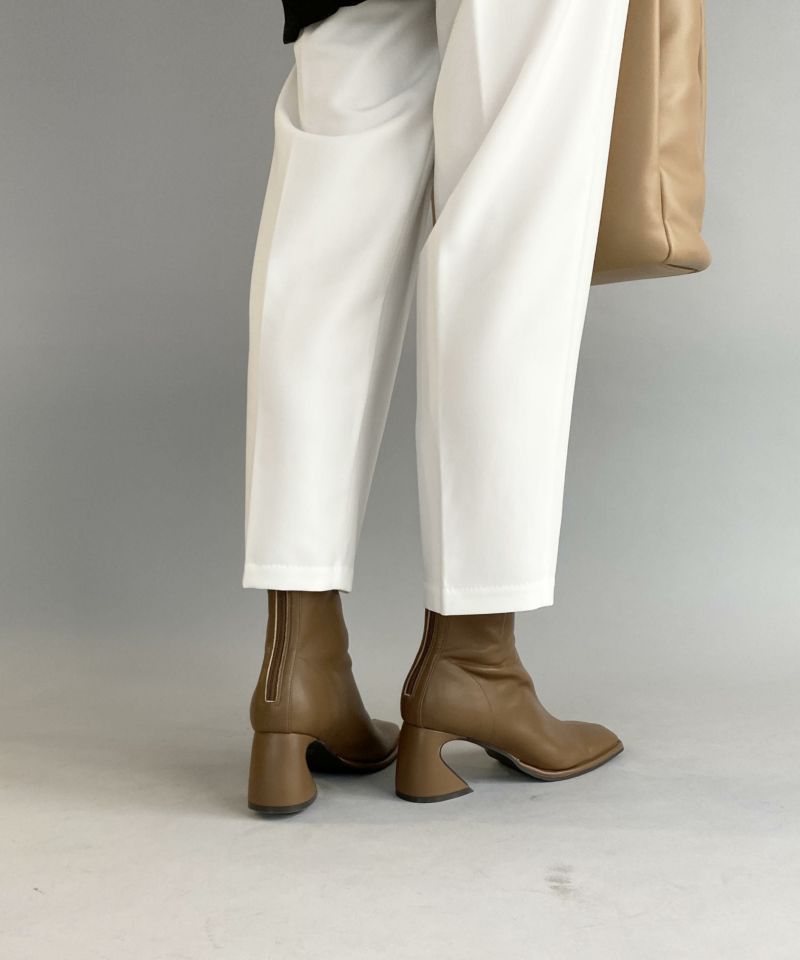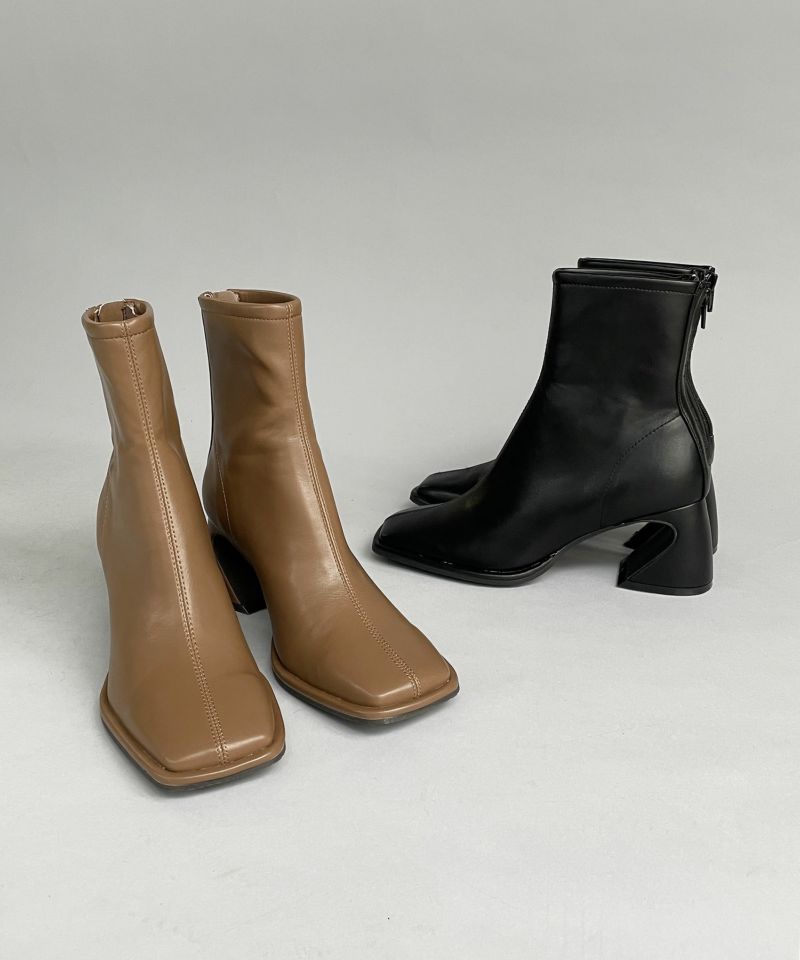 デザイン性のあるヒールがポイントのスクエアブーツ。
