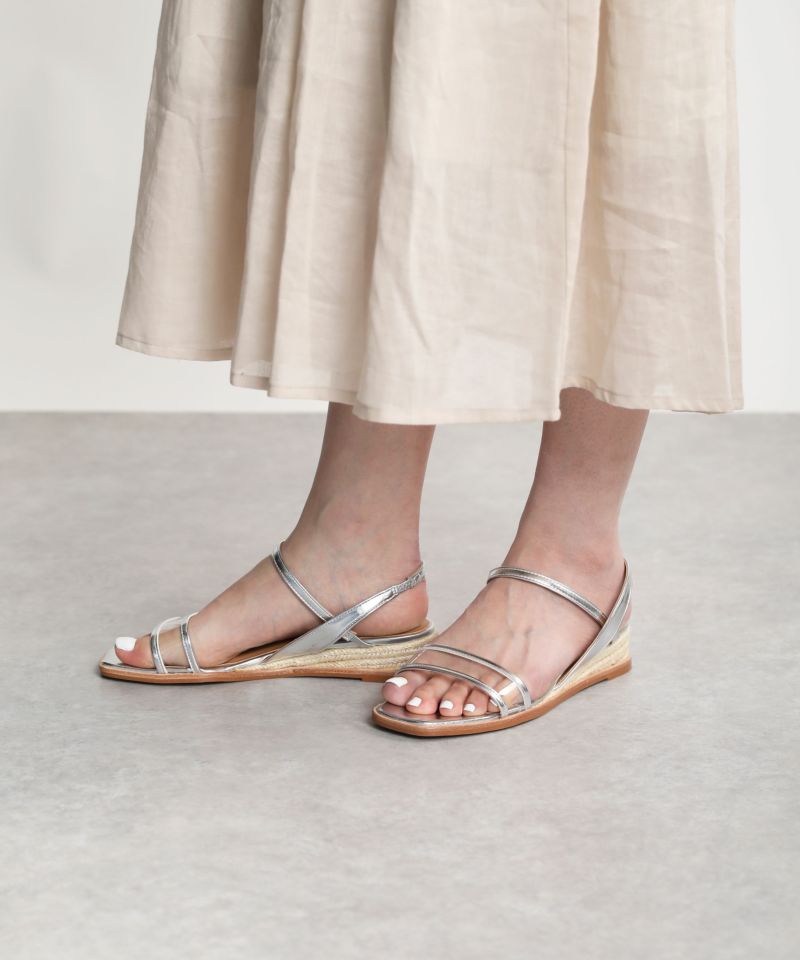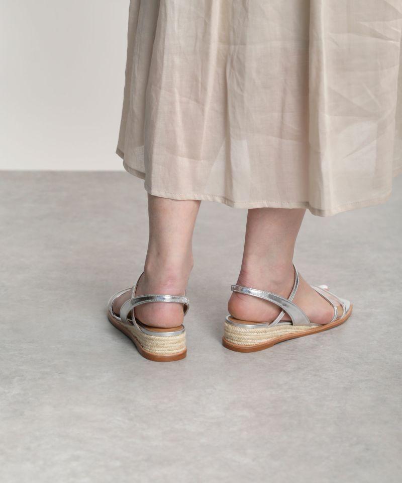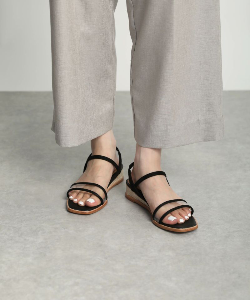 ジュート巻きヒールとクリアストラップの清潔感あふれるサンダル