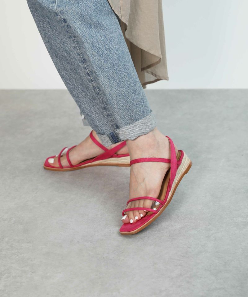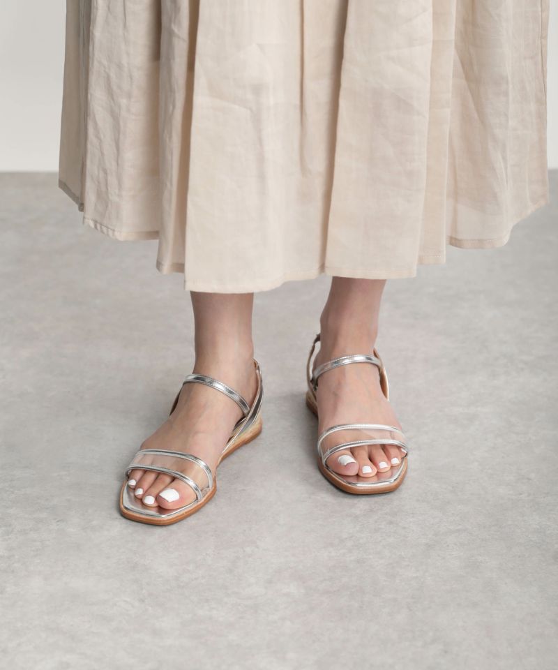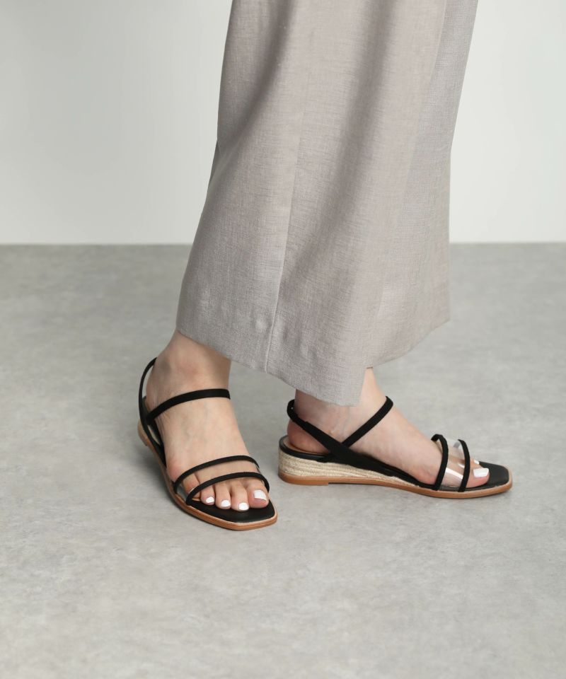 ジュート巻きヒールとクリアストラップの清潔感あふれるサンダル