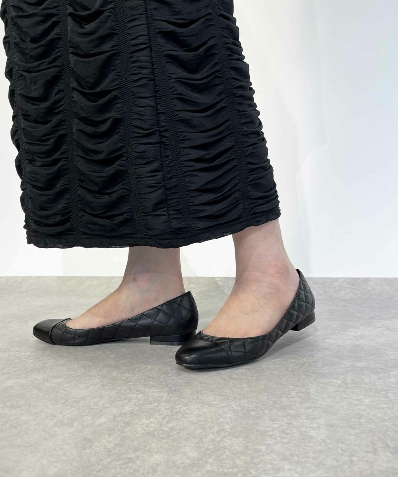 ブラックはキルティングデザインにつま先はスムース素材の切り替えで同色でも洒落感があります。