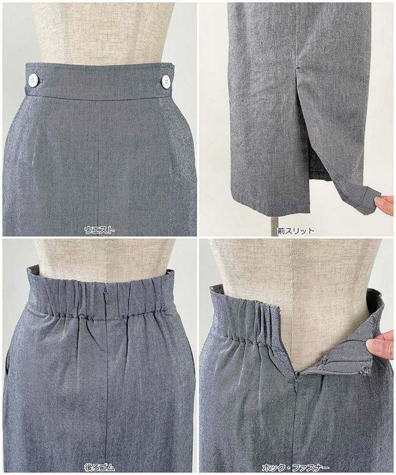 フロントはすっきりとしたウエストと後ろはゴム仕様。