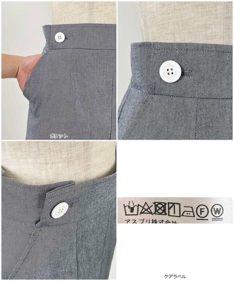 フロントはすっきりとしたウエストと後ろはゴム仕様。