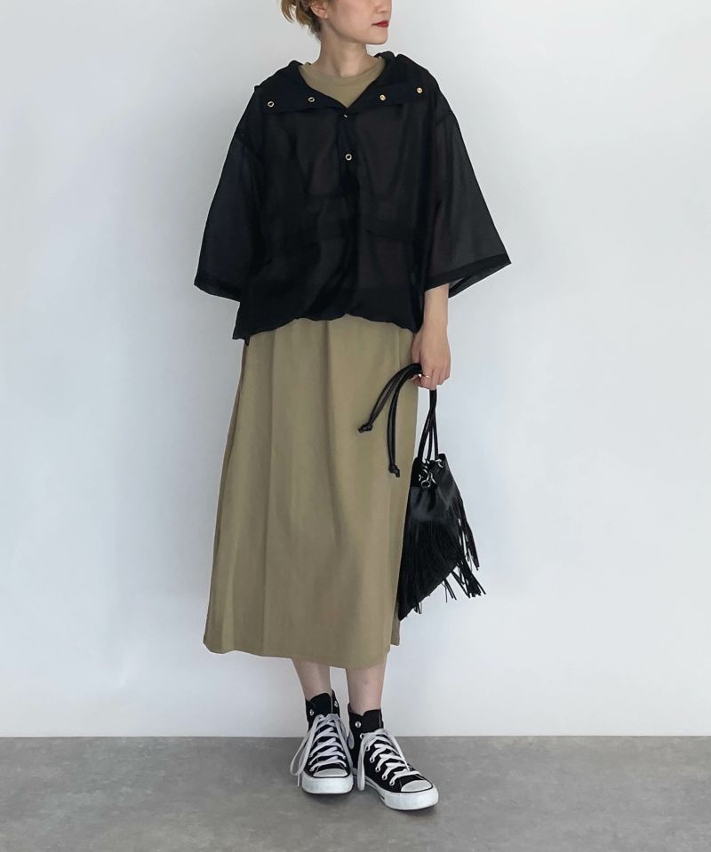 裾のドロストを絞ってふわっと立体感を出した着方も◎