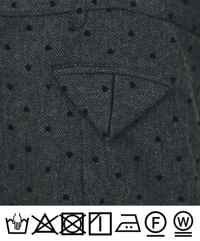 ほんのりあたたかみのあるウール混のへリンボーン生地に、さりげなく散りばめられた小さなハート柄のフロッキー加工。