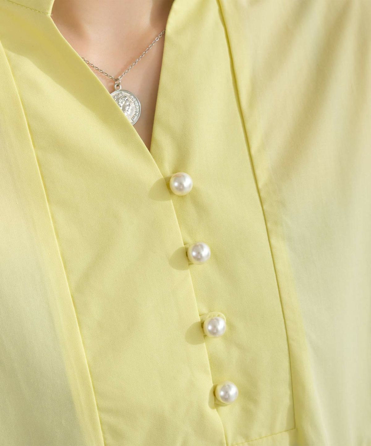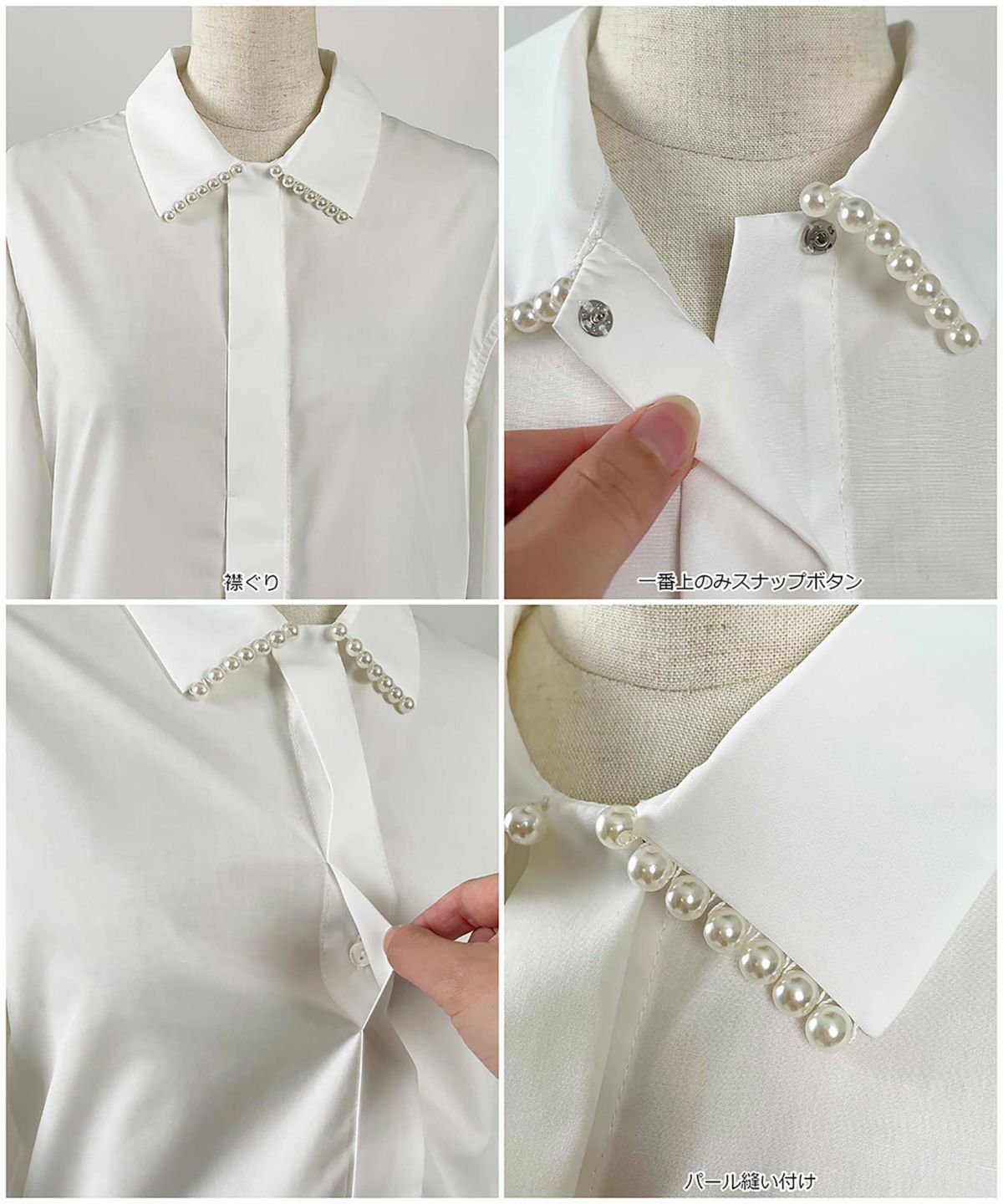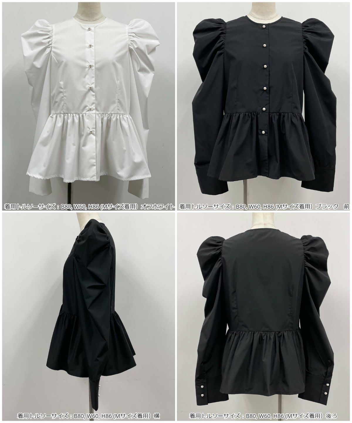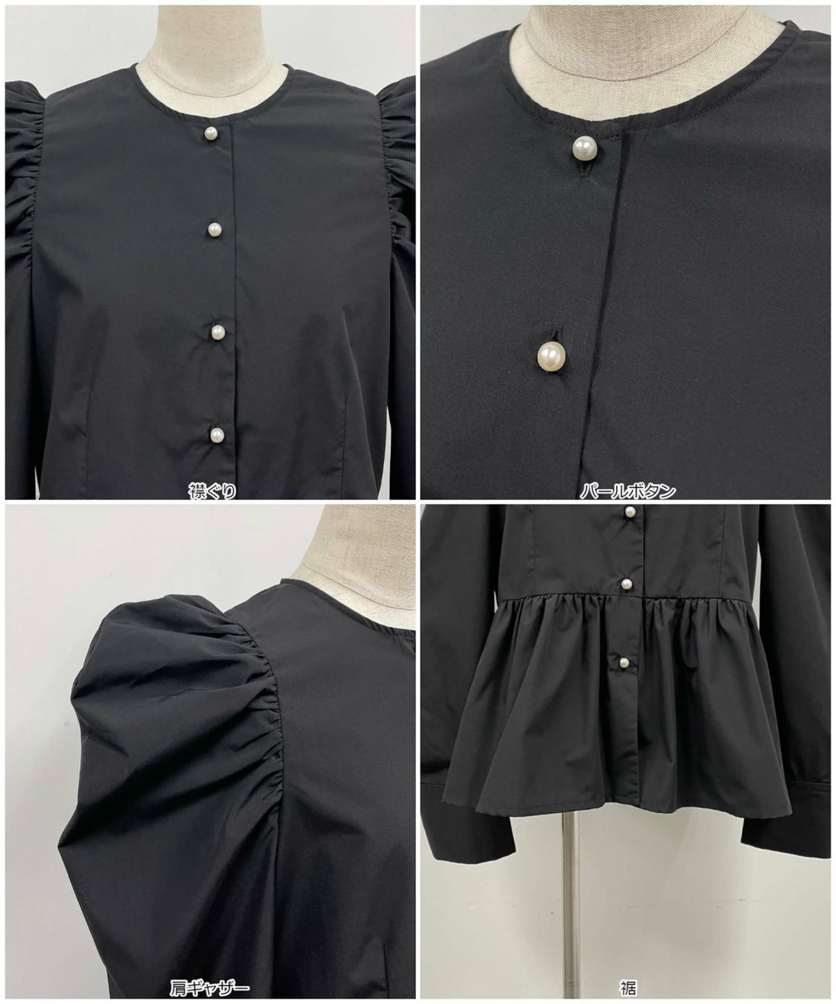 【セットアップ可能】裾ペプラムパール付きブラウス