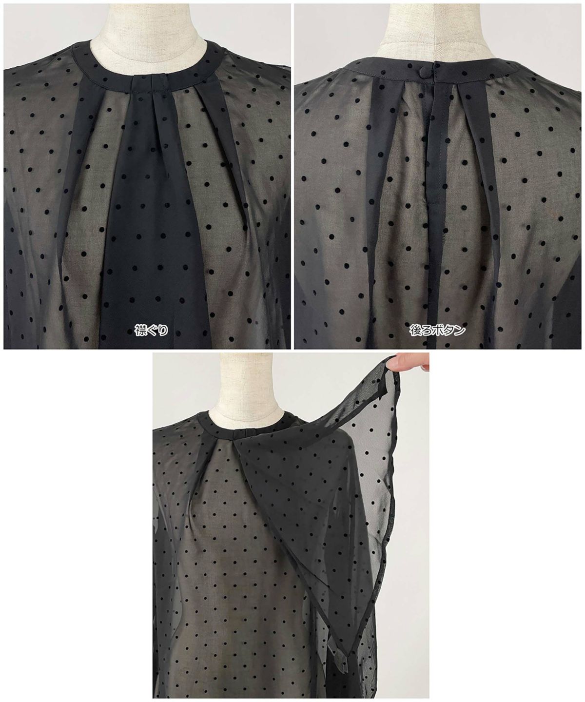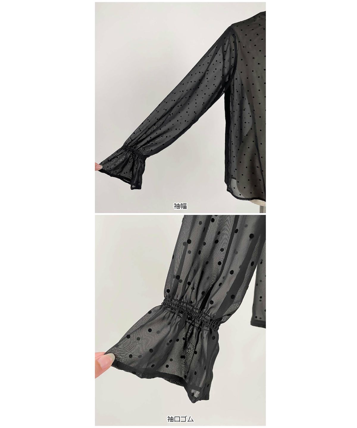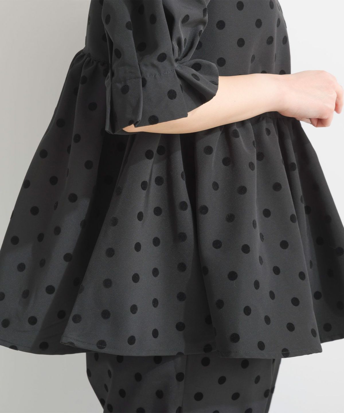【セットアップ可能】フロッキードットペプラム五分袖ブラウス