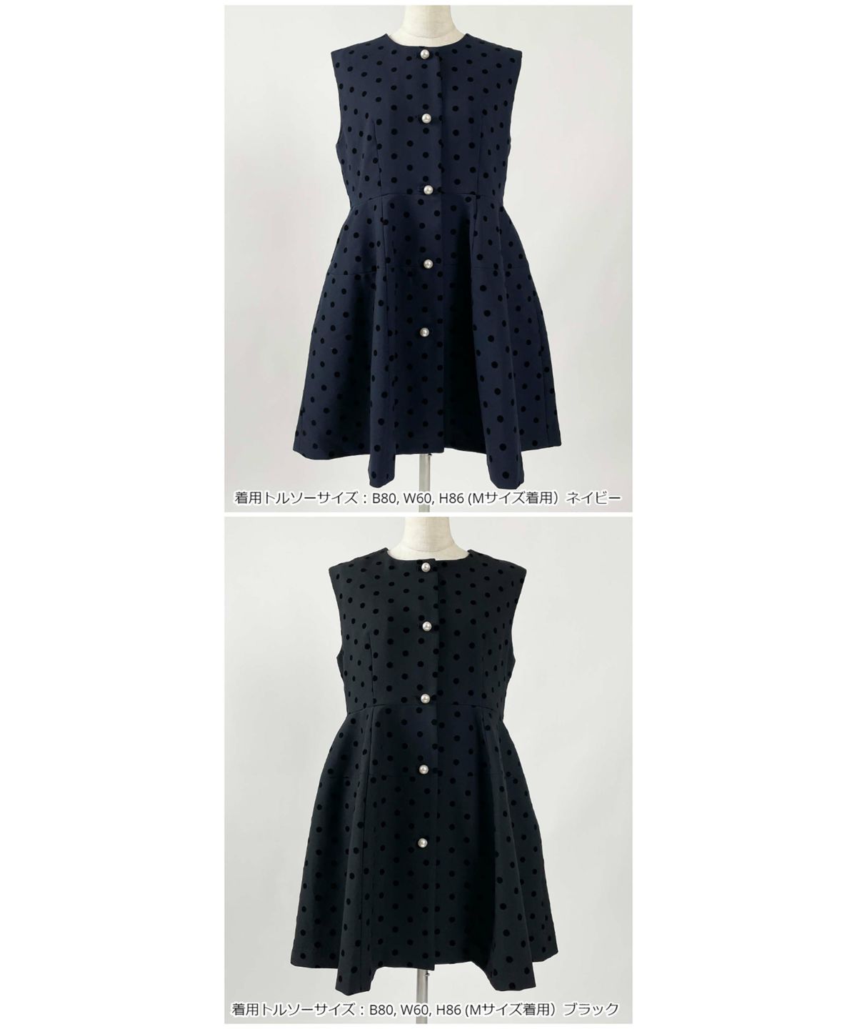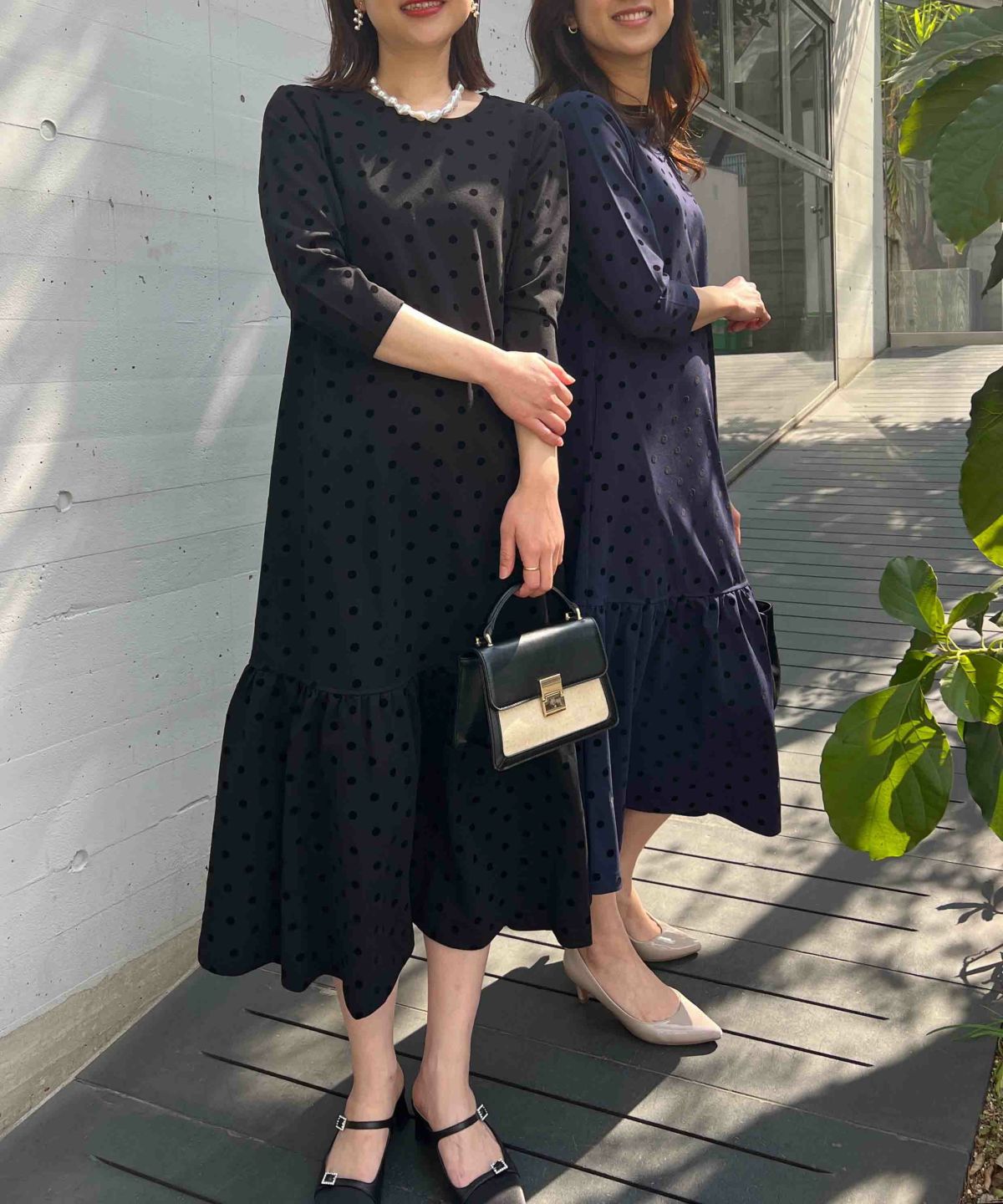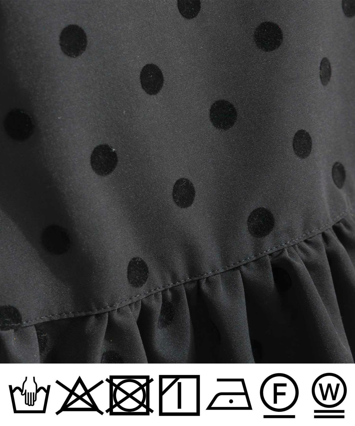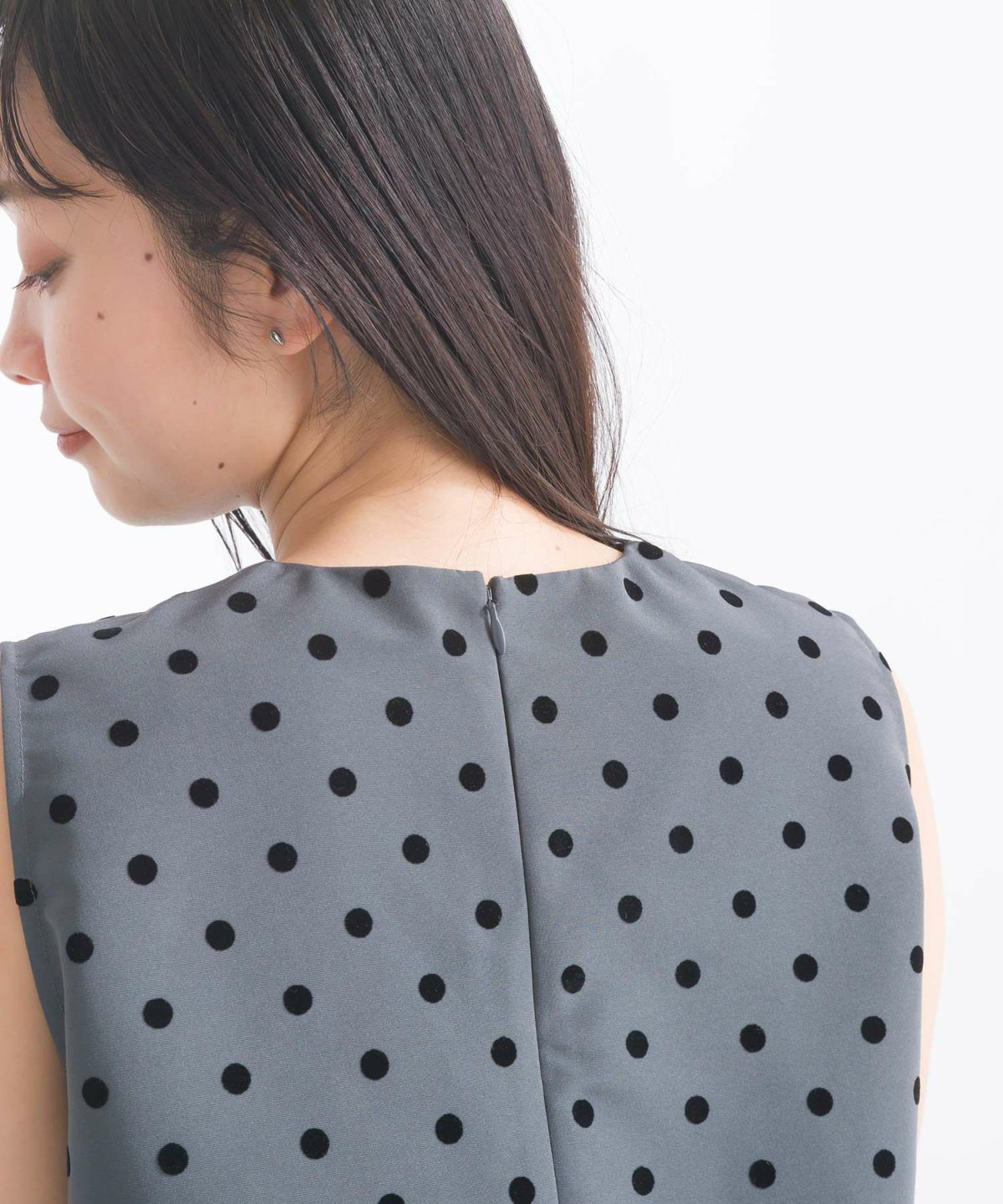 【セットアップ可能】フロッキードットペプラム五分袖ブラウス