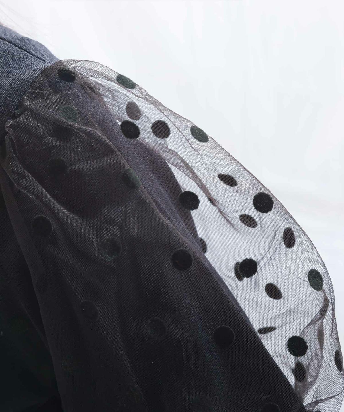 【セットアップ可能】フロッキードットタック袖プルオーバー