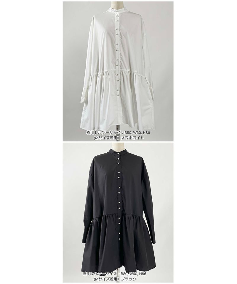 2個ずつ均等に並んだパールボタンがポイントのチュニックブラウス
