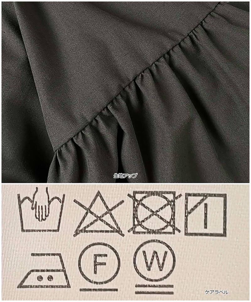 裾の切替え部分のギャザーが可愛く腰回りをカバーしてくれるので体型カバーも叶います。