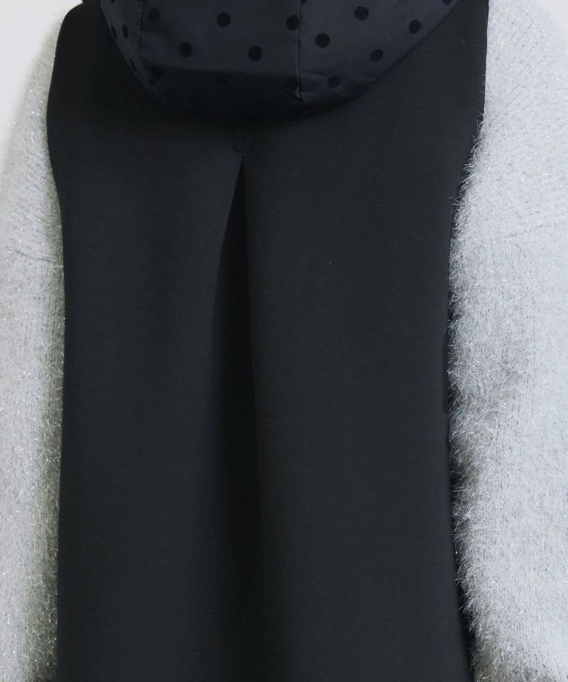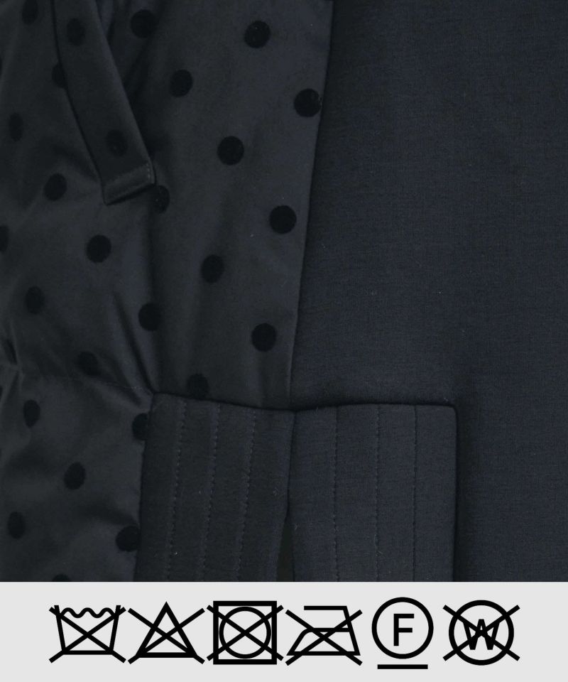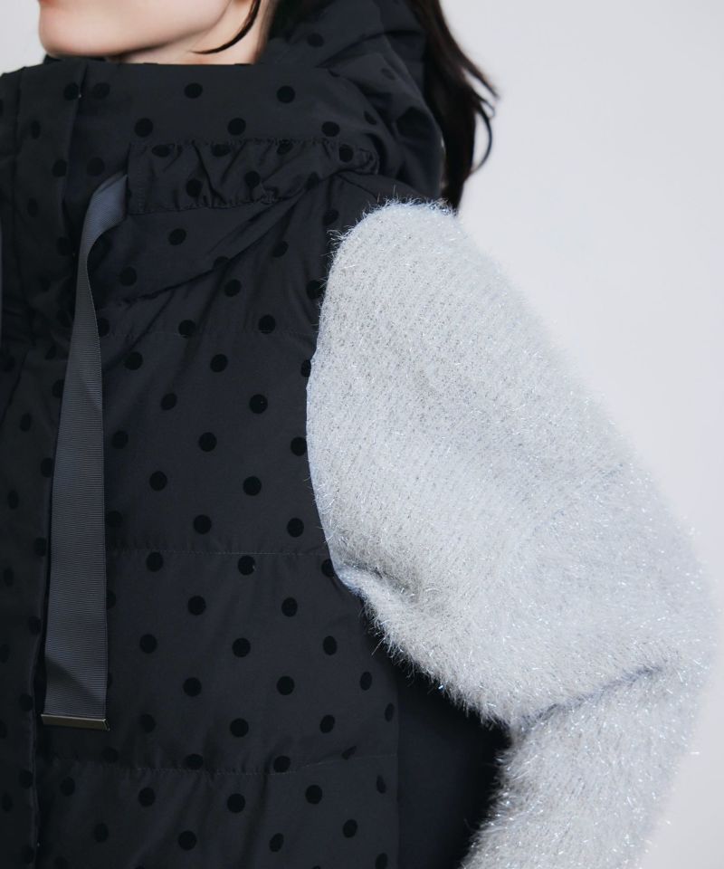 フロント部分はフロッキードット、後ろはダンボールニットのロングダウンベスト