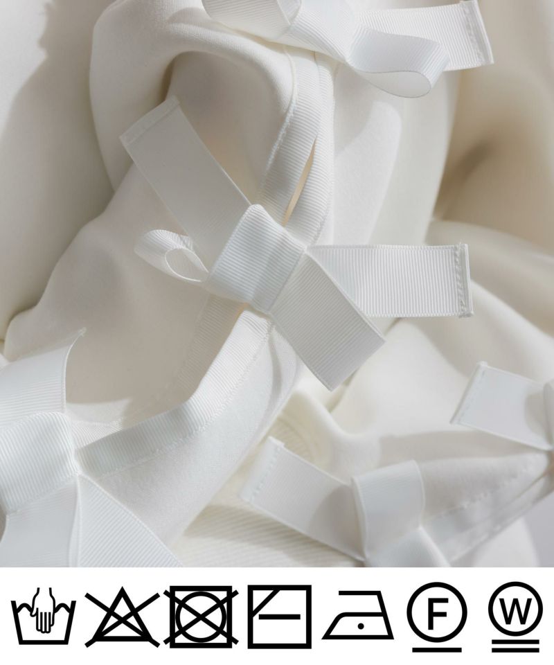 左右の袖部分に均等に施されたリボンが華やかでフェミニンな印象に。