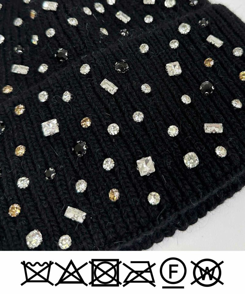 ふわっと軽くてあたたかい、大人のためのビジューニット帽。