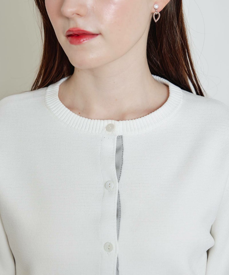 デイリーからお出かけ、オフィスまで幅広く使える、大人フェミニンなカーディガンです。