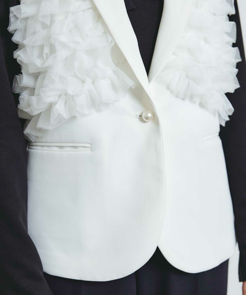 軽やかなチュール素材をドッキングしカチッとしすぎない柔らかい印象に。