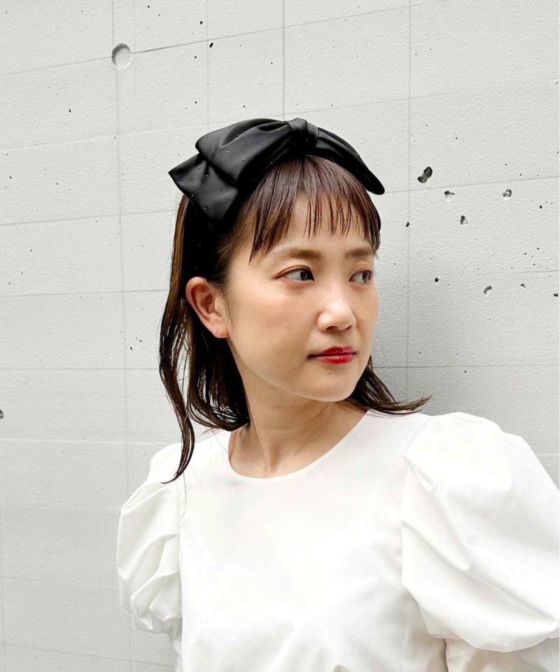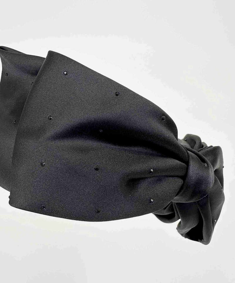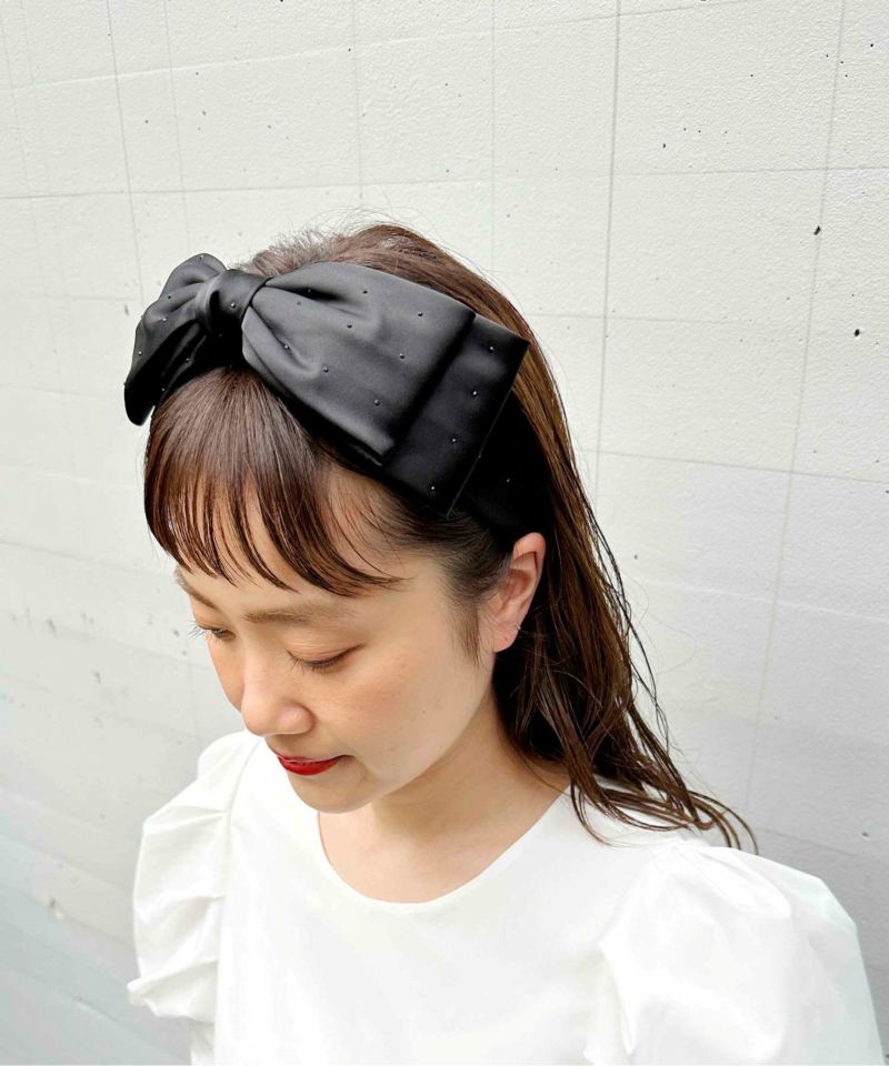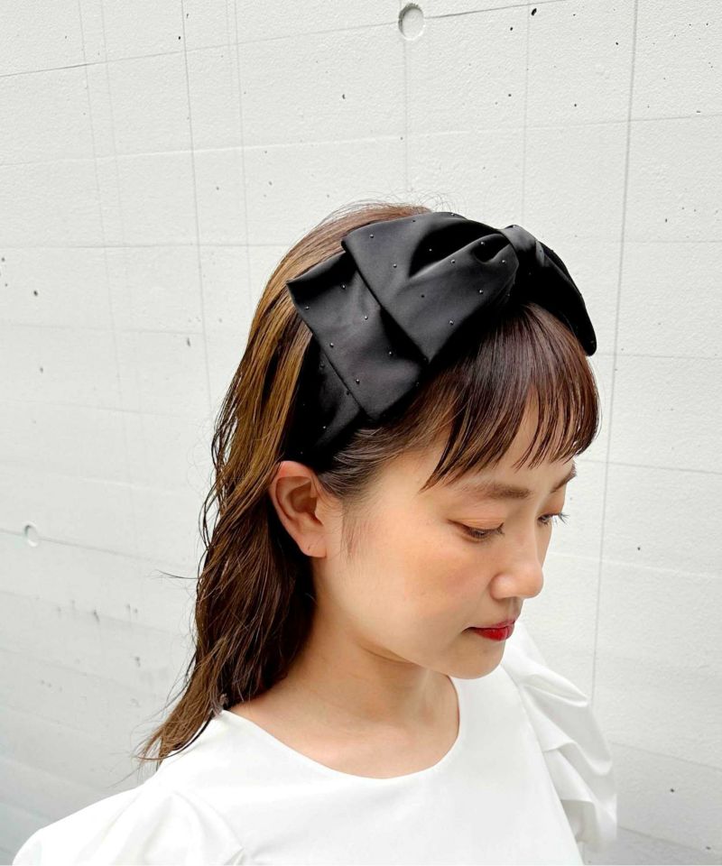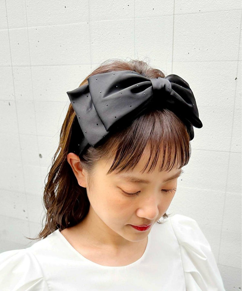 さり気ない華やかさをプラスしてくれるラインストーン付きリボンカチューシャ