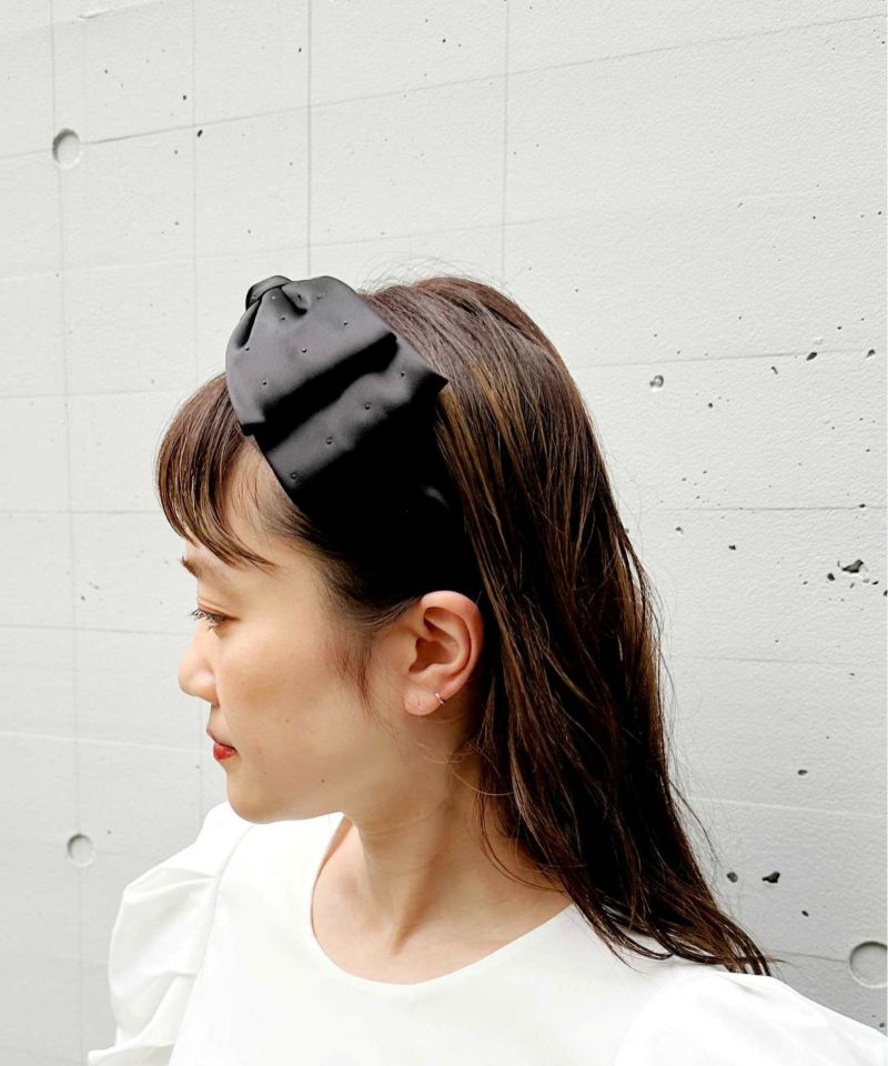 幅広の作りだから、いつものヘアスタイルに付けるだけでコーデのアクセントに。