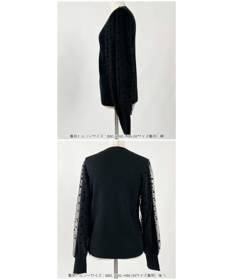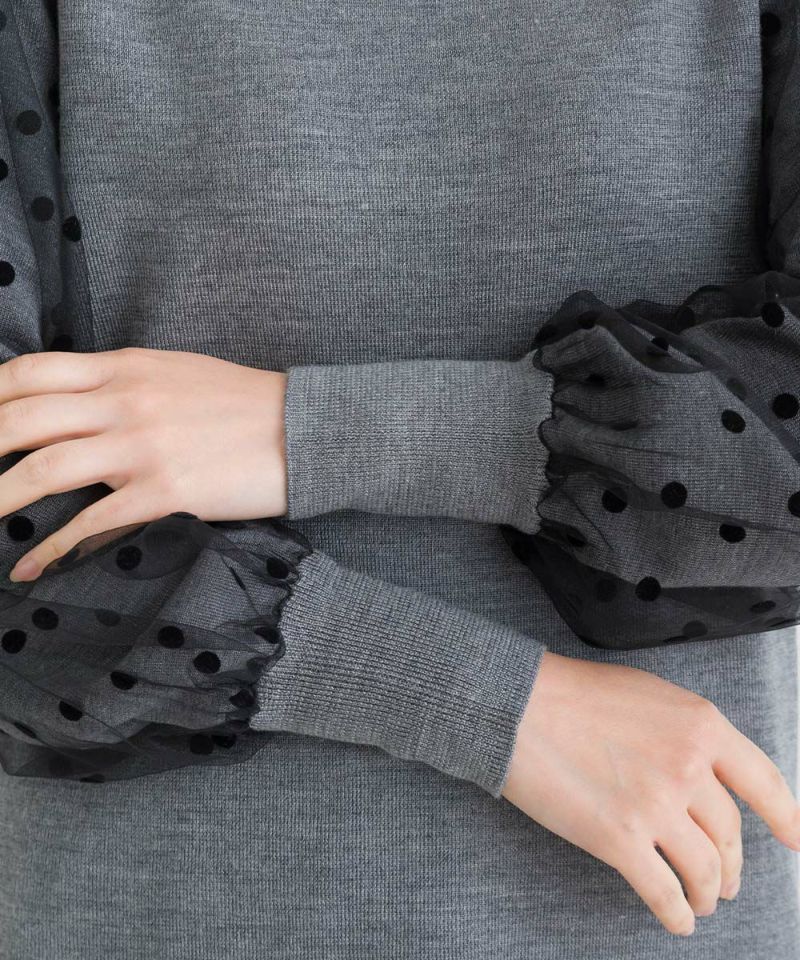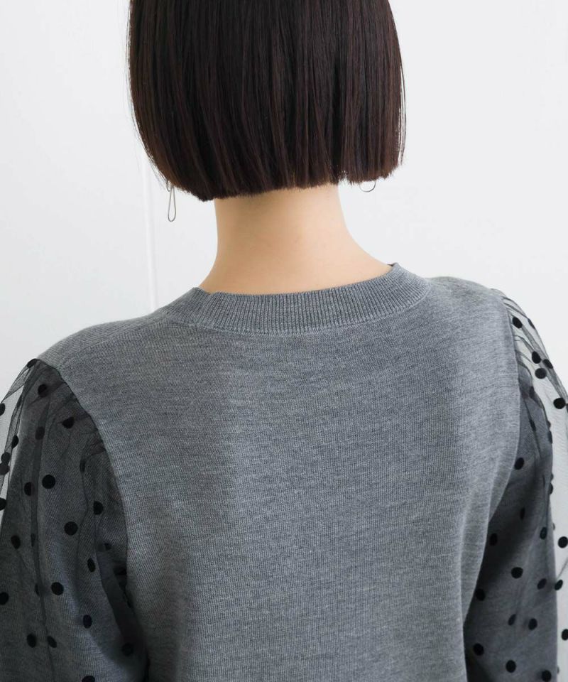 シンプルニットに袖チュールをプラスした大人可愛い一枚に仕上げました。