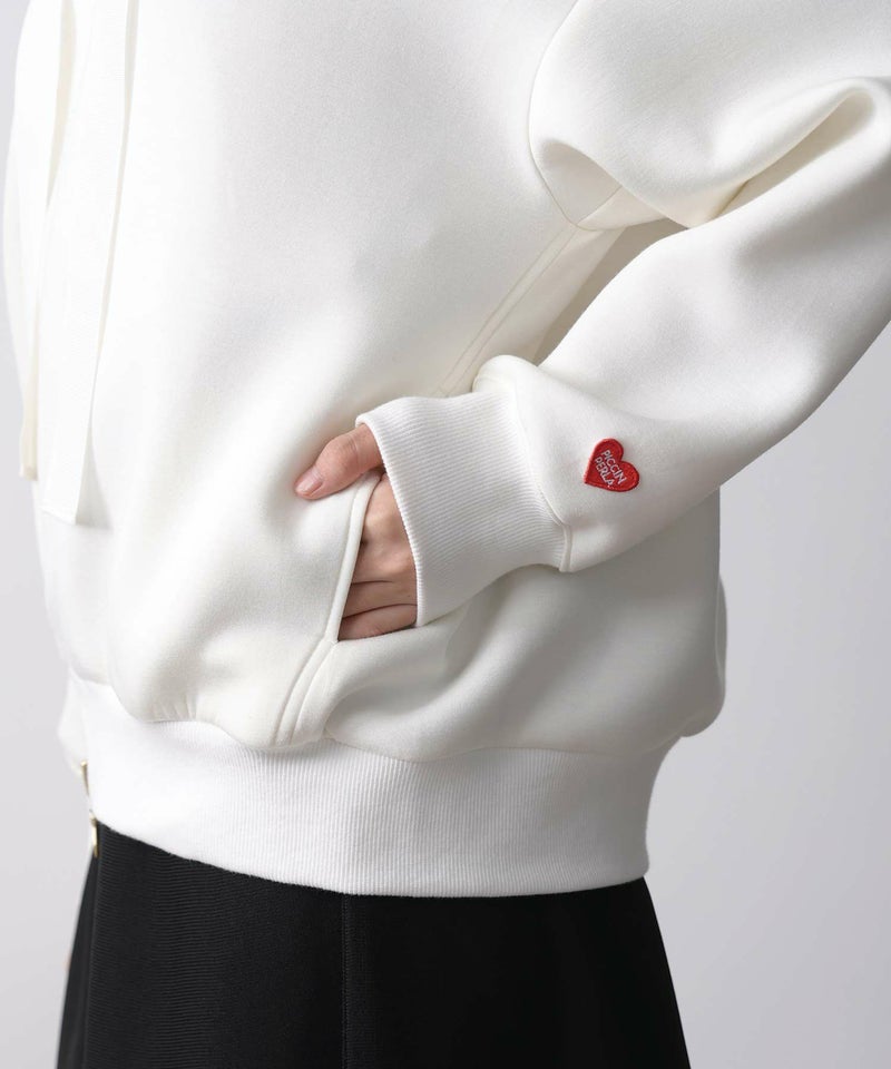 カジュアルになりがちなパーカーですが、スラックスやロングスカートなど