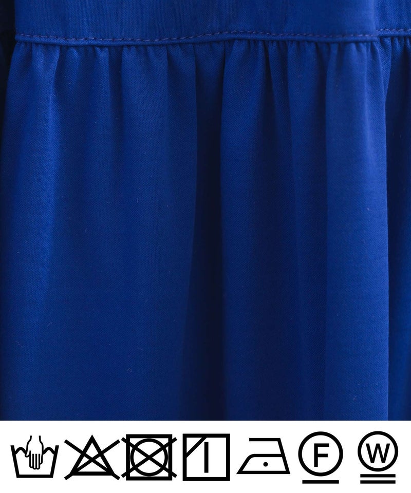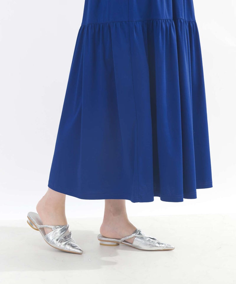 上身頃はクルーネックですっきりと。切り替えから広がるティアードが、