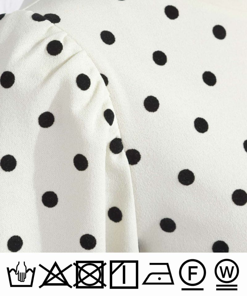 フロッキードット加工が施されたストレッチ素材のカット生地を使用。