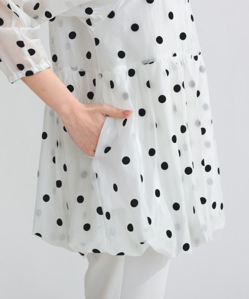 切り替えギャザーや裾のバルーンによって、 ふんわりと女性心くすぐるフェミニンなシルエットに仕上げました。