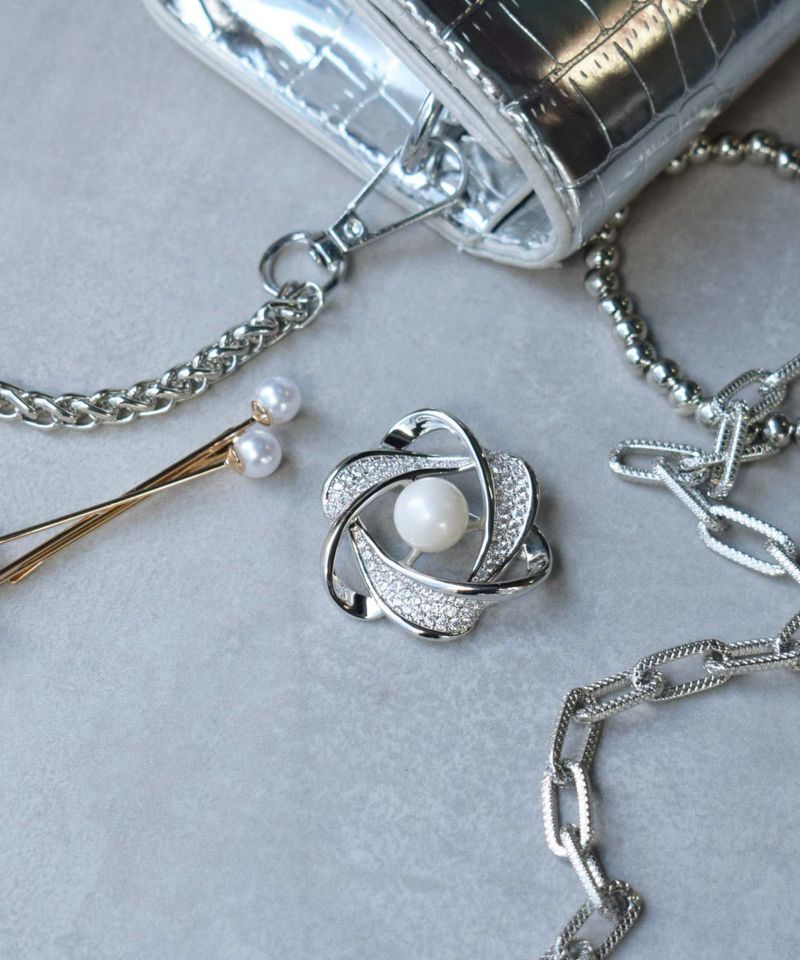 きらめくストーンと中心にパールストーンをあしらったデザイン。