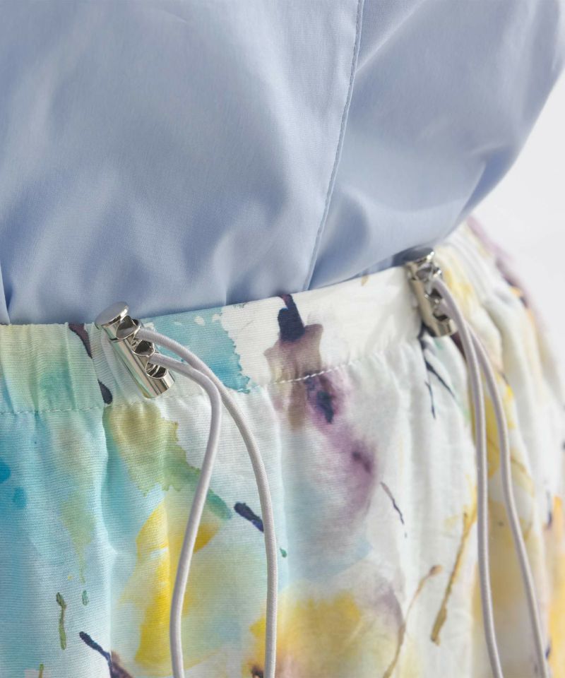 ウエストは総ゴムなのでノンストレスな着脱。ドロストを採用し調節も可能です。