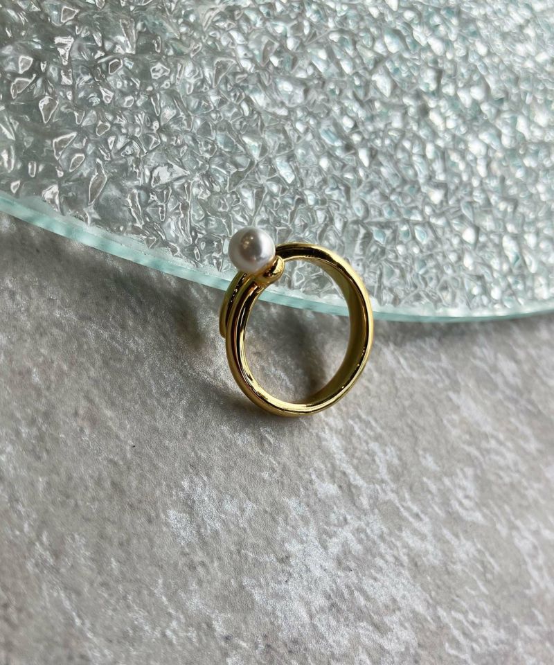 流線型のラインの土台に一粒パールがぽつんと乗ったシンプルなデザイン。