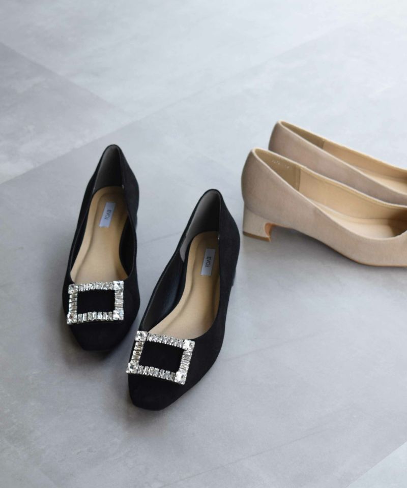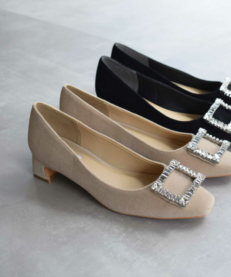 人気のビジューバックルパンプスに