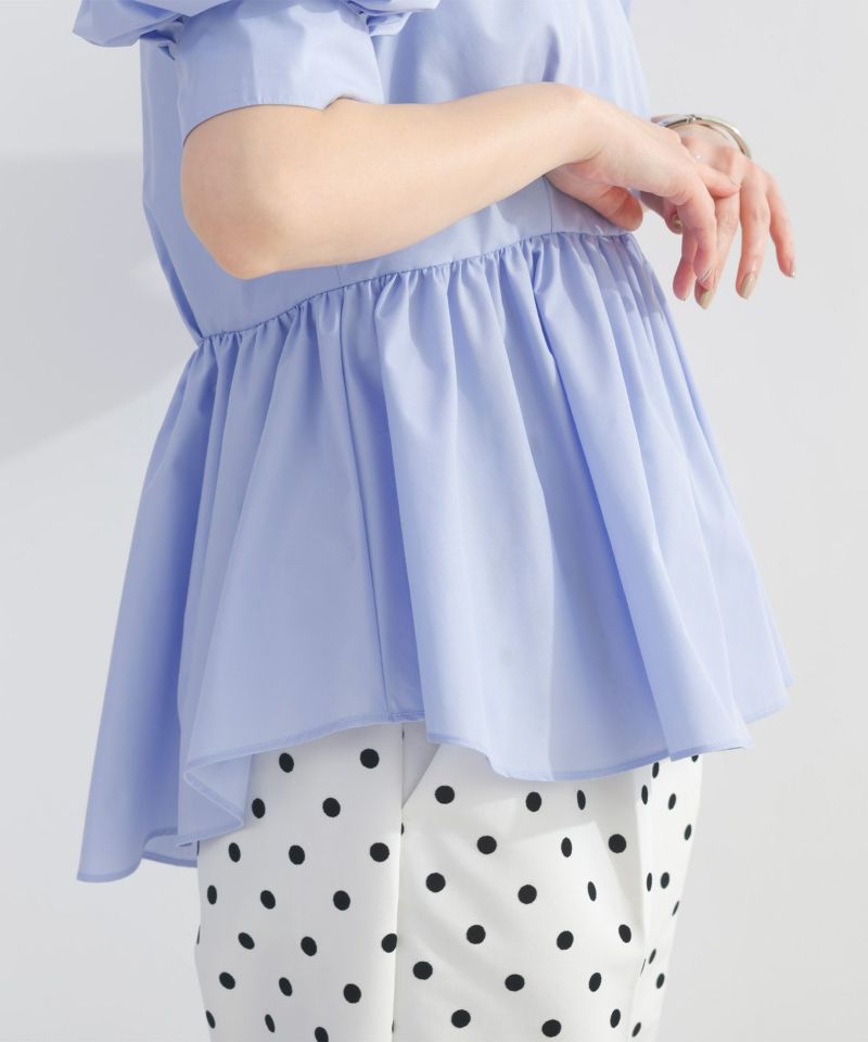 ウエスト切り替えから広がるペプラムが、より女性らしさを引き立ててくれます。