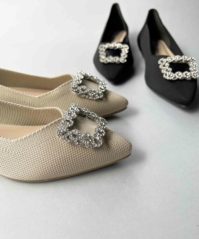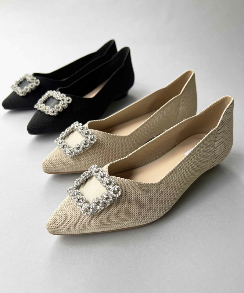人気のニットパンプスをビジュー付きでエレガントにアップデート