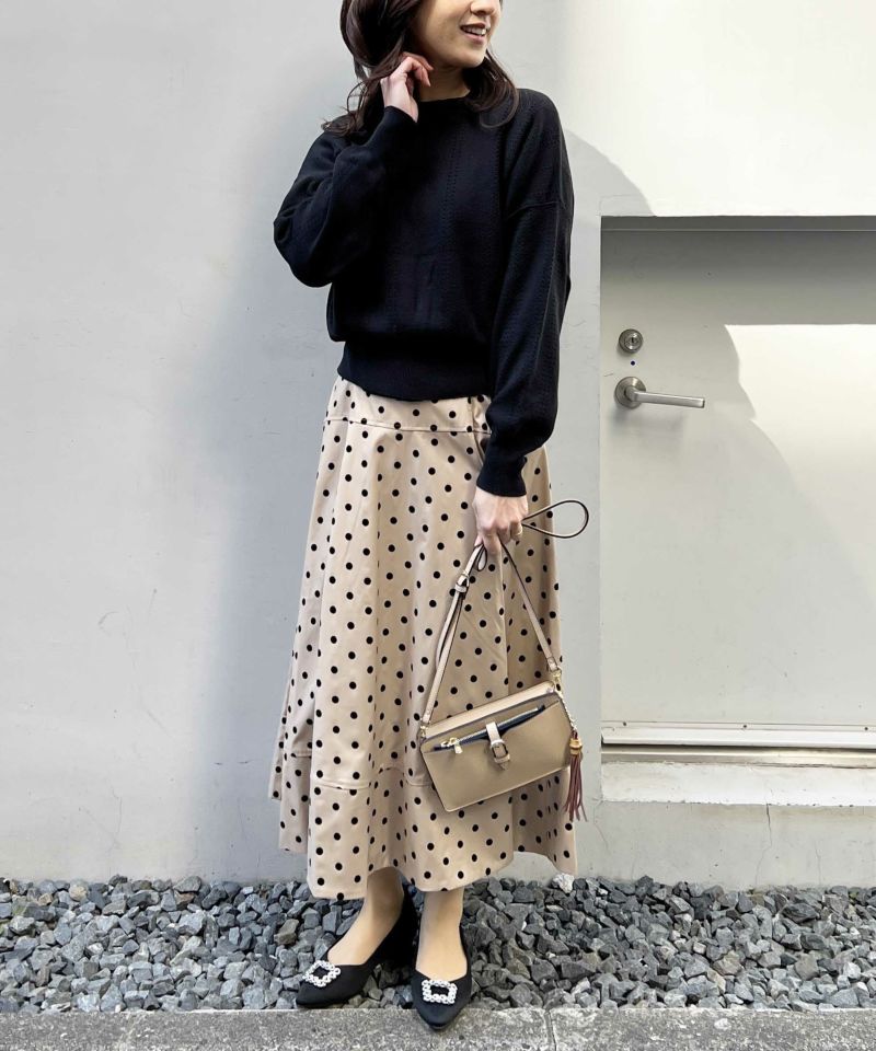 人気のニットパンプスをビジュー付きでエレガントにアップデート