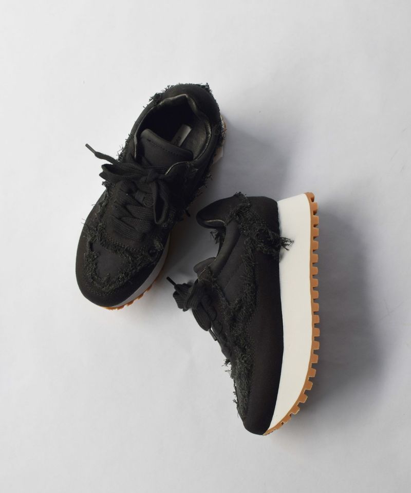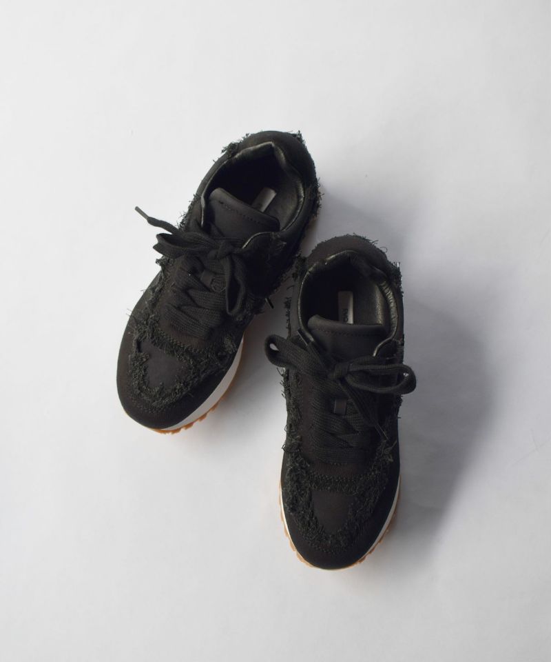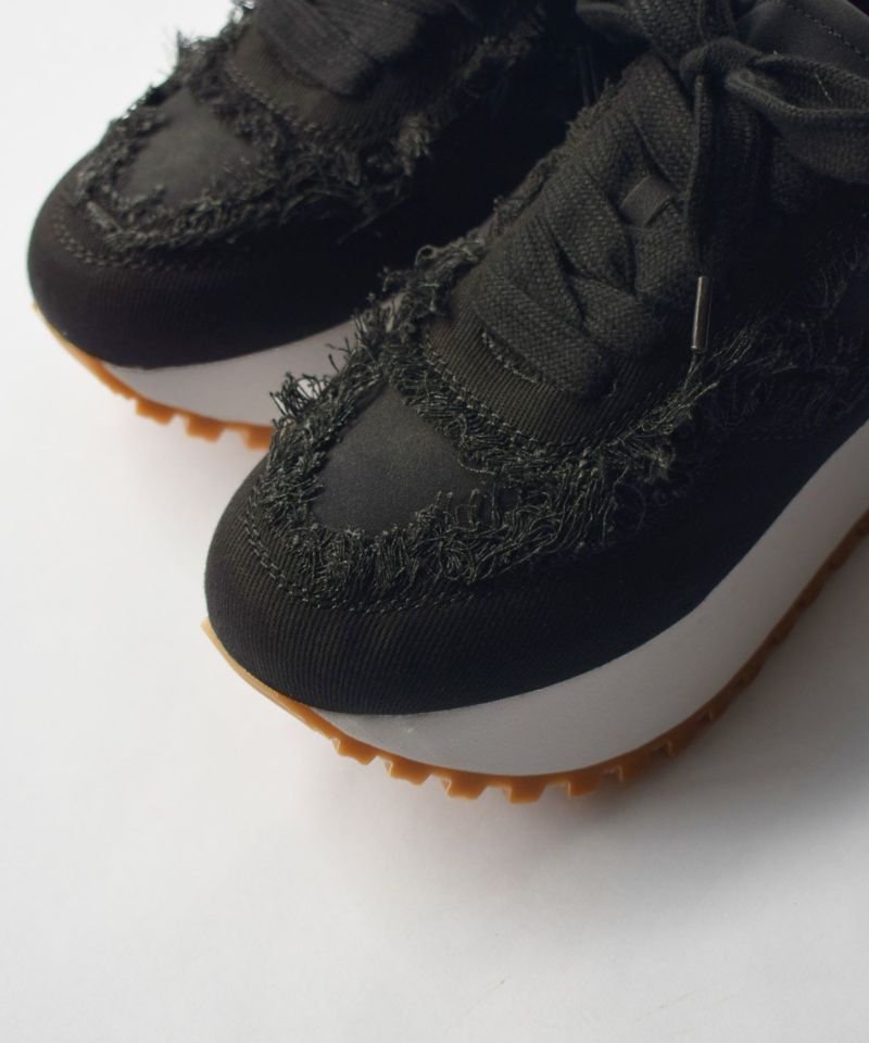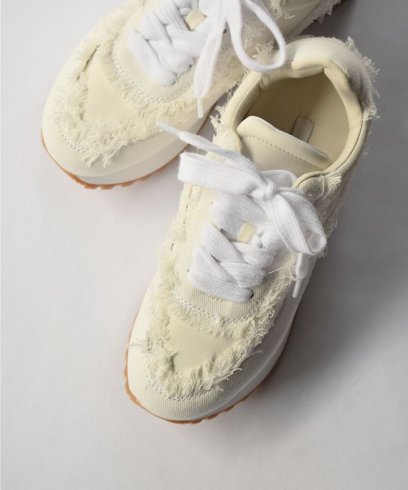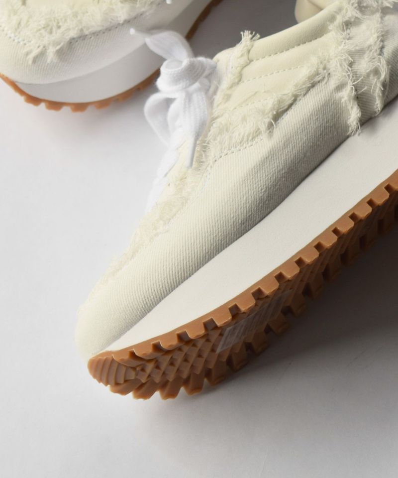 シンプルに見えて、フリンジデザインがポイントのスニーカー。
