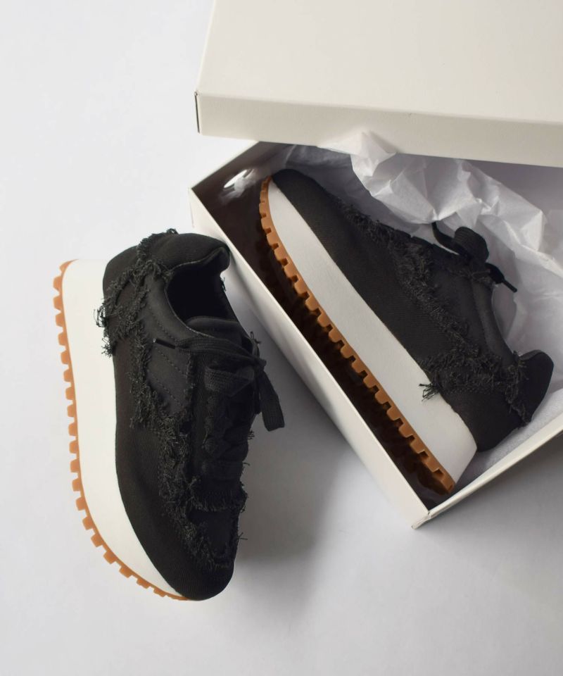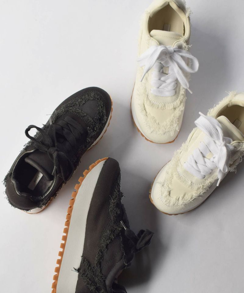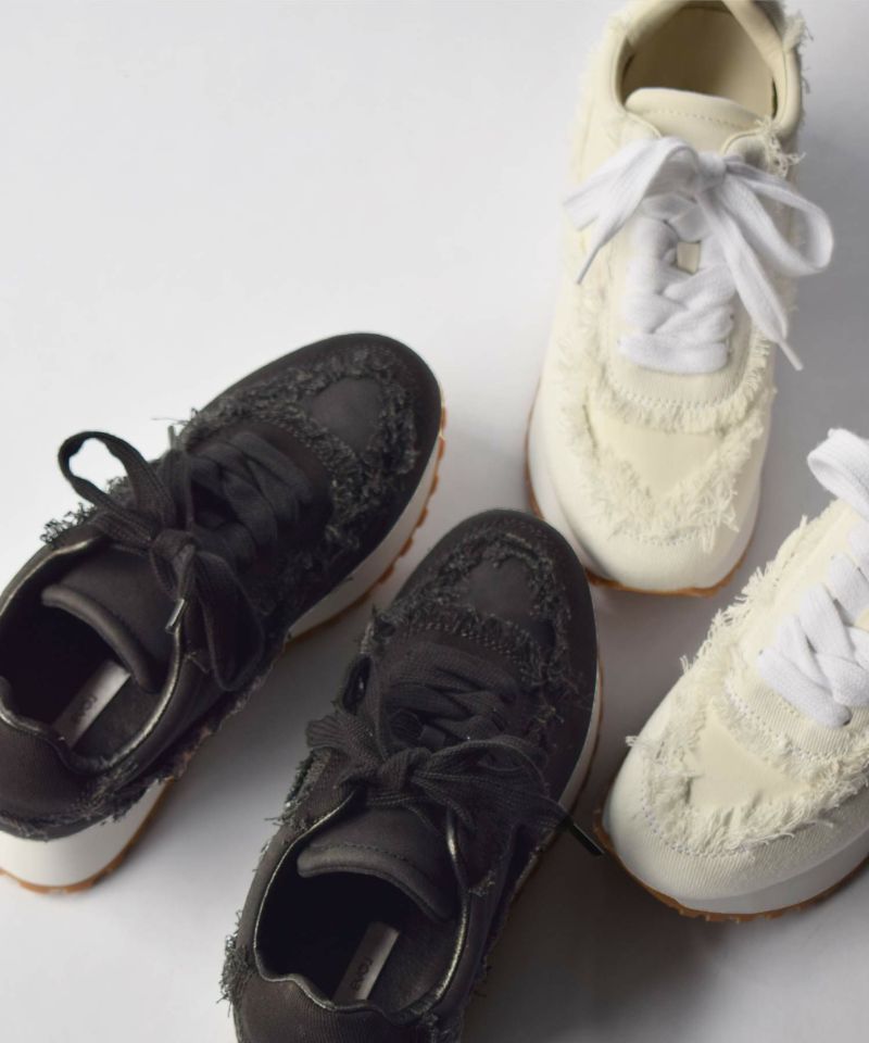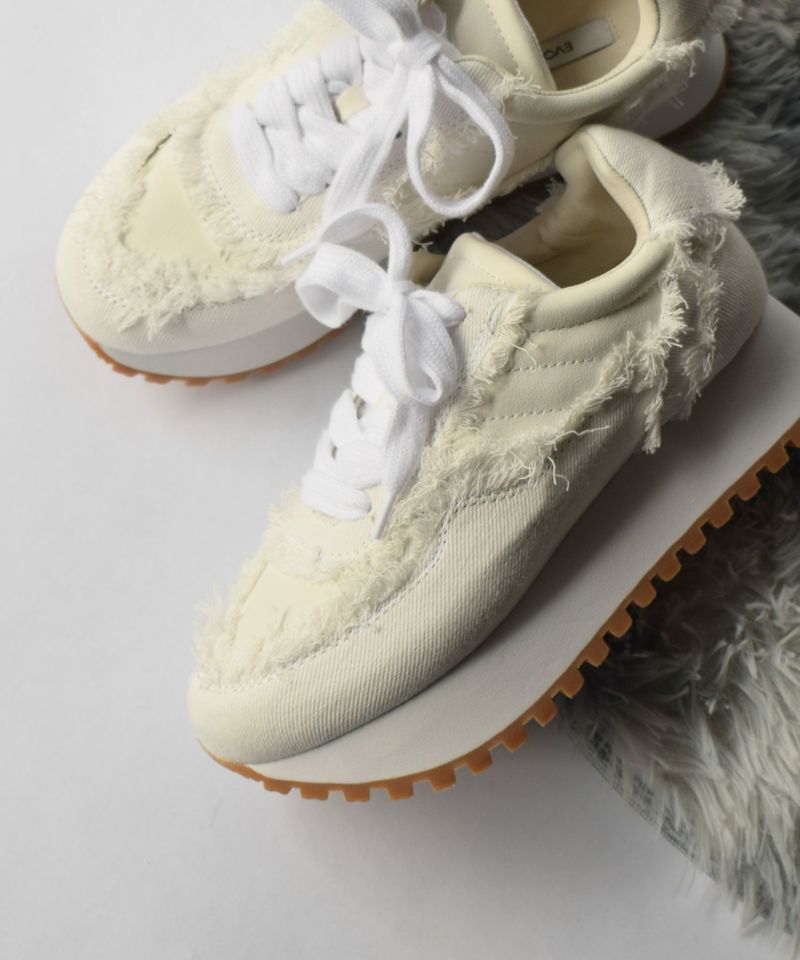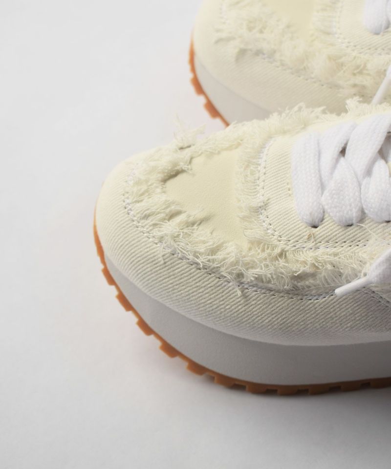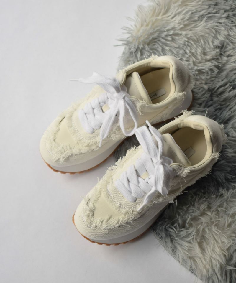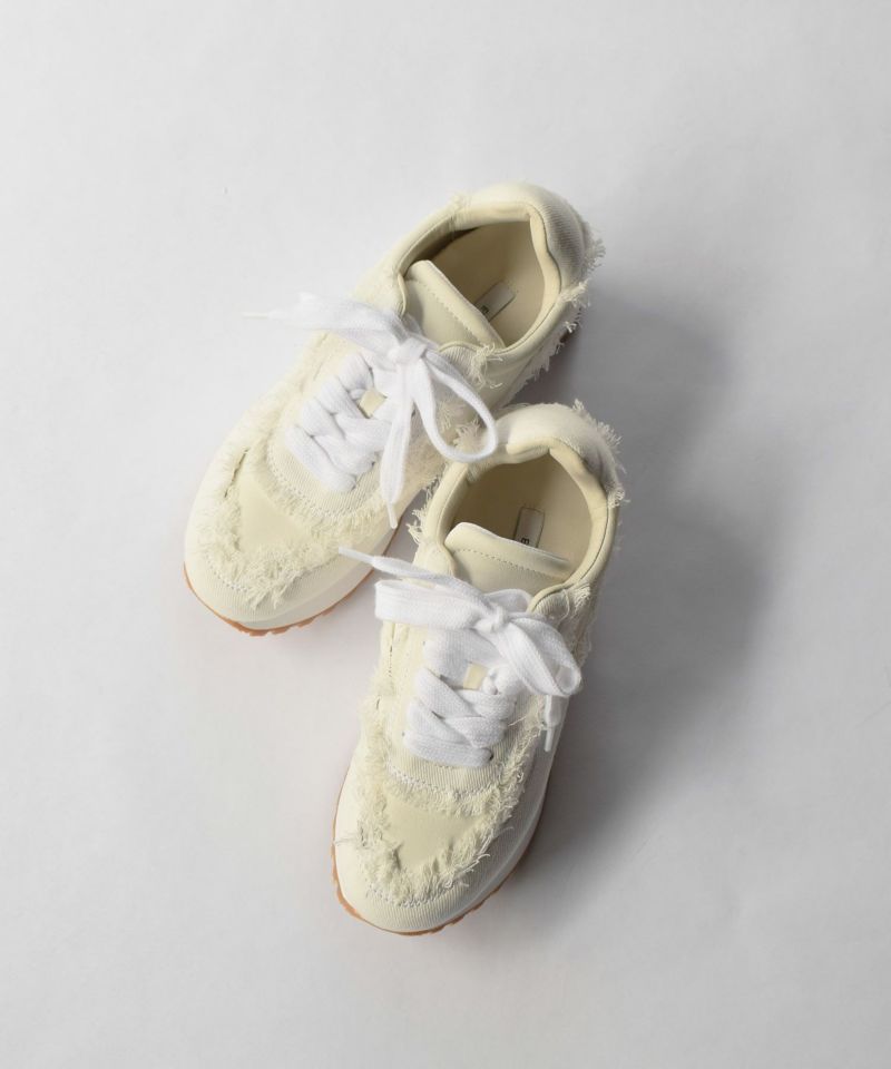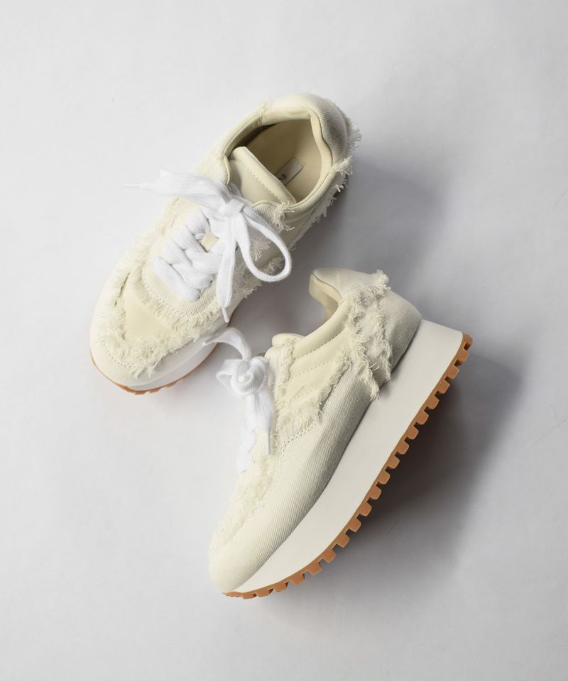 シンプルに見えて、フリンジデザインがポイントのスニーカー。